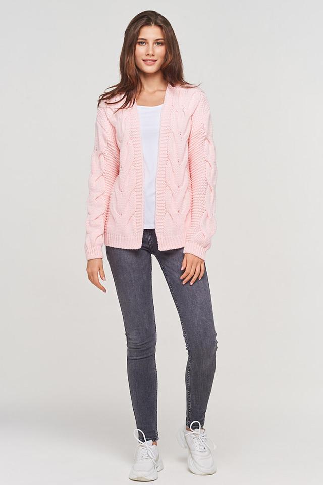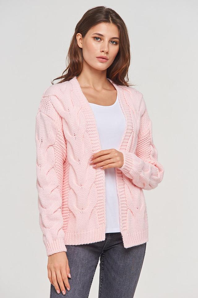 Розовый жакет BE YOU из мягкого вязаного полотна с косами станет отличным дополнением к вашему гардеробу. Модель имеет свободный крой и рукава с объемными манжетами. Состав: пан 70%, шерсть 30%