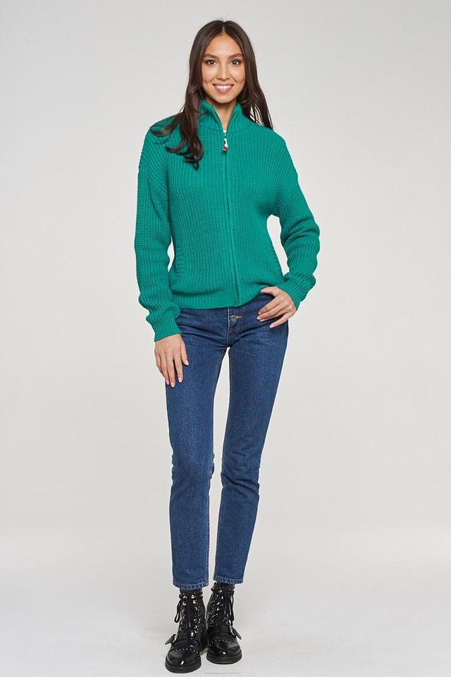 Зелёный вязаный жакет от BE YOU – удобная и стильная модель на молнии. Жакет имеет объёмную текстуру крупной вязки и высокий воротник, что делает его отличным выбором для прохладной погоды. Состав: пан 70%, шерсть 30%