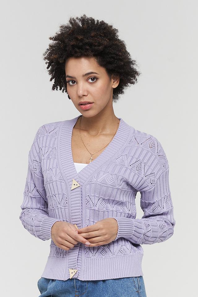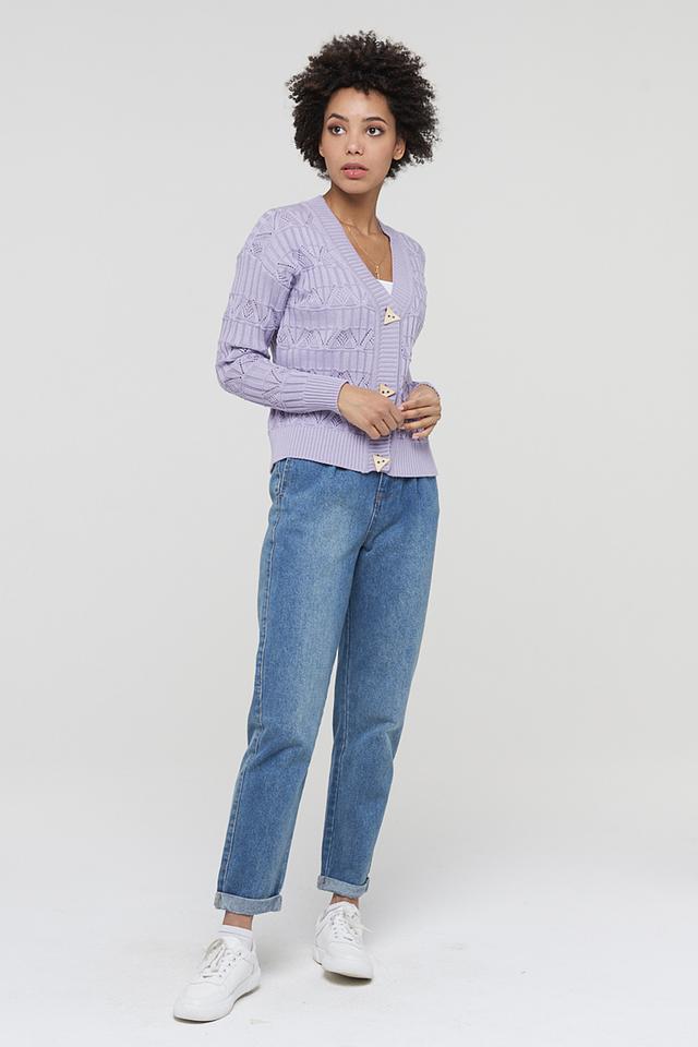 Лавандовый кардиган BE YOU с узором "косы" станет уютным дополнением к вашему гардеробу. Модель выполнена из мягкого трикотажа с добавлением хлопка, застегивается на пуговицы. Состав: хлопок 50%, пан 50%