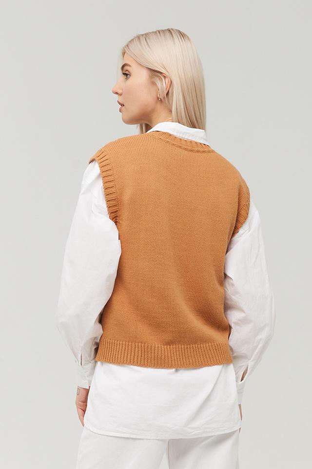 Этот жилет от BE YOU станет отличным дополнением к вашему гардеробу. Он выполнен в горчичном цвете и имеет классический вязаный дизайн с косами.