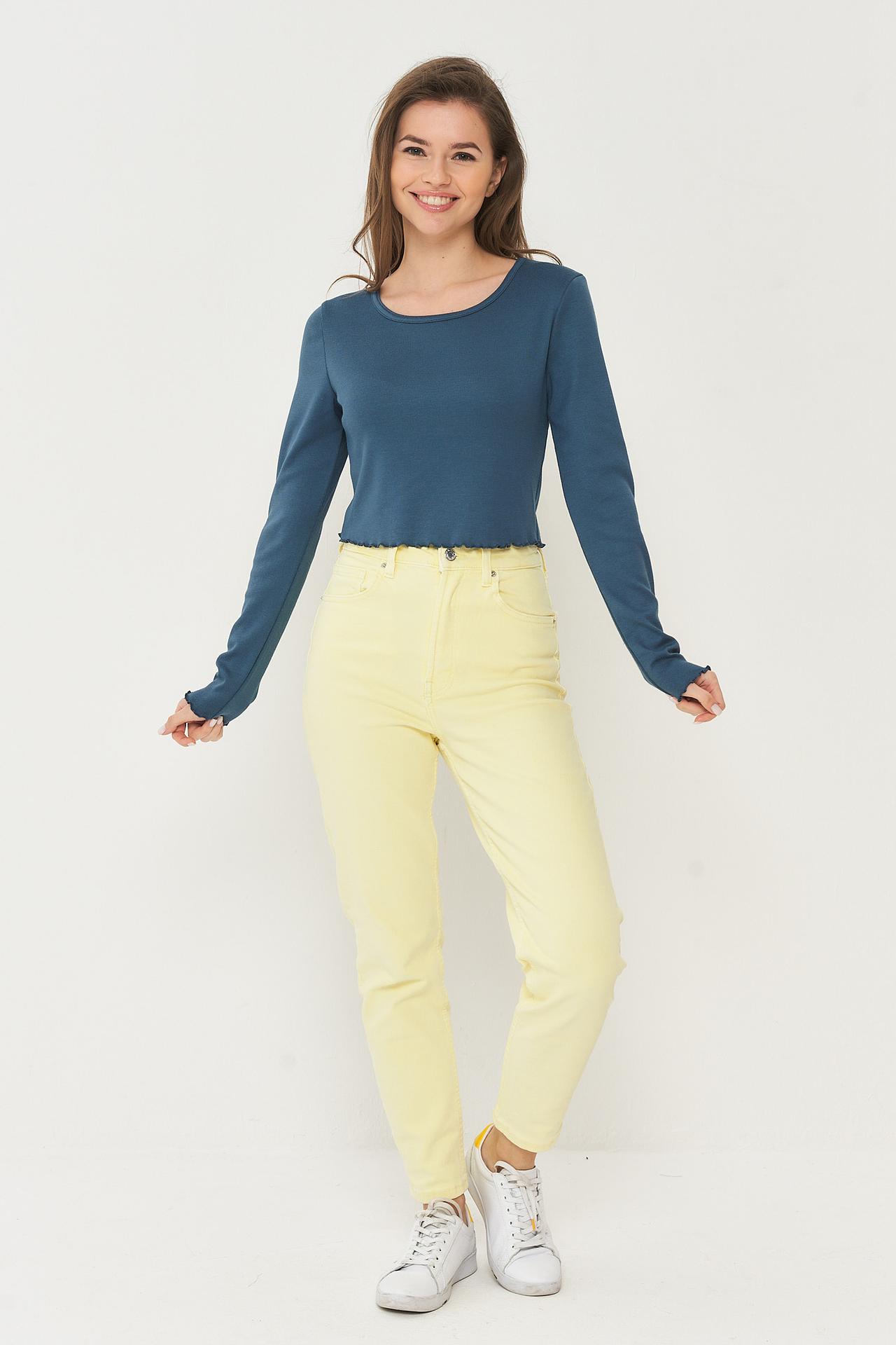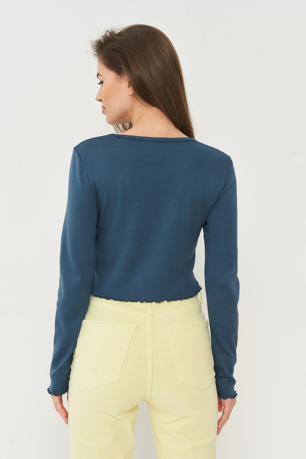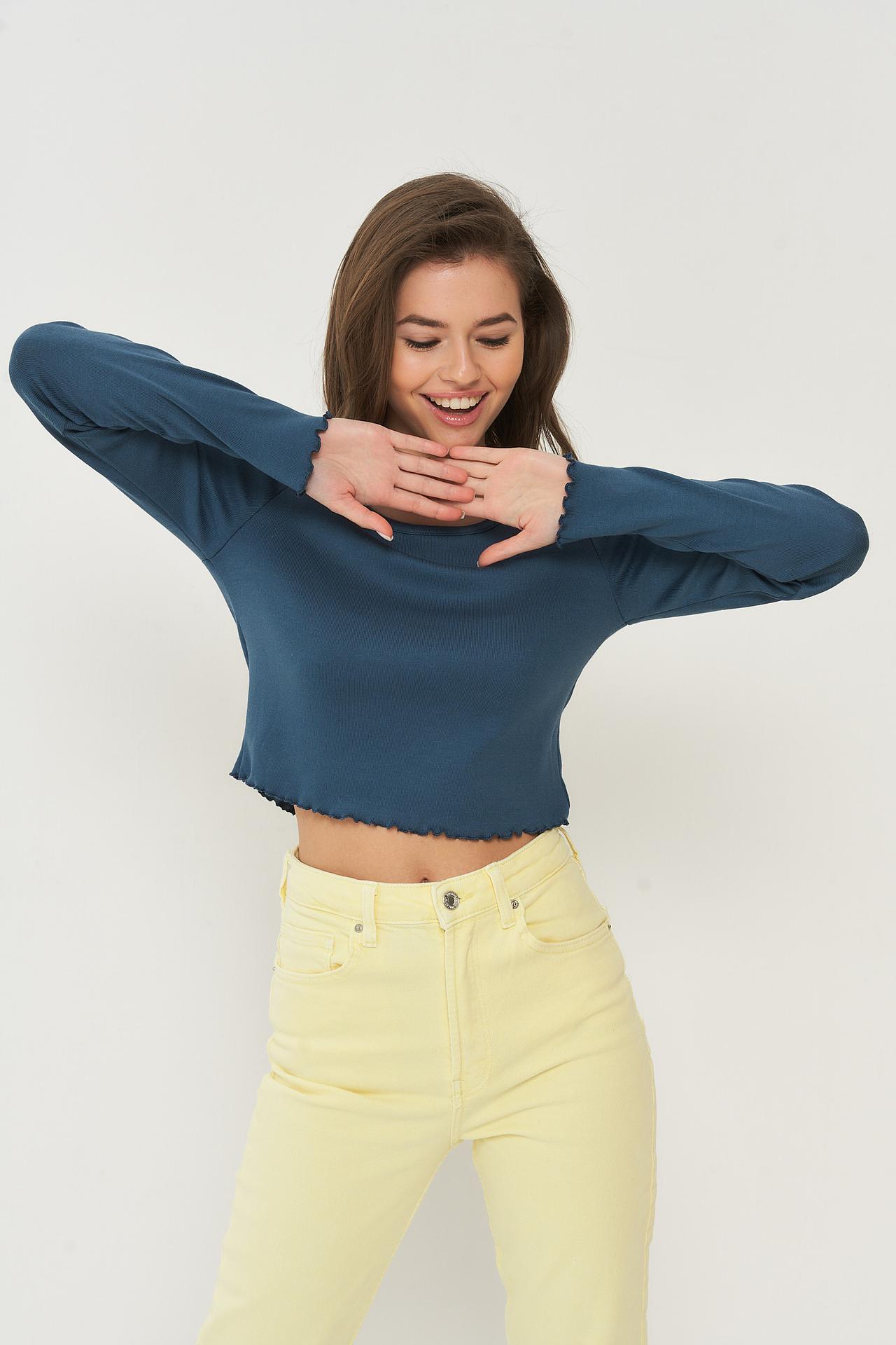 Топ BE YOU синий с длинным рукавом и оборкой