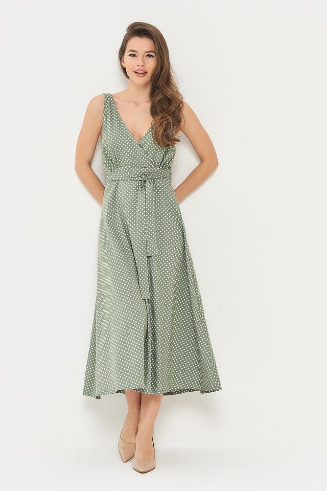 Платье BE YOU в горошек зеленое