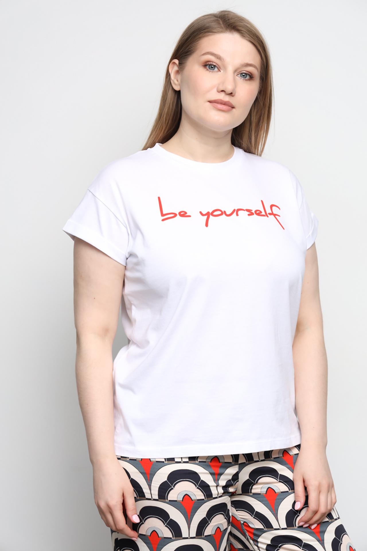- Дизайн: Лаконичная футболка с яркой надписью "Be yourself".