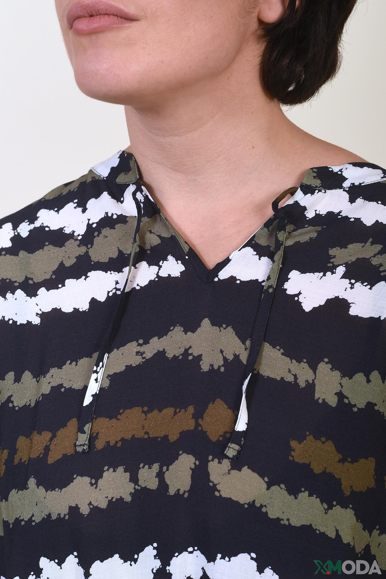 Модель выполнена в классическом стиле с оригинальным принтом, который придает ей особую изюминку. Блузка отлично подойдет для повседневной носки, а также станет прекрасным дополнением к деловому или вечернему наряду.