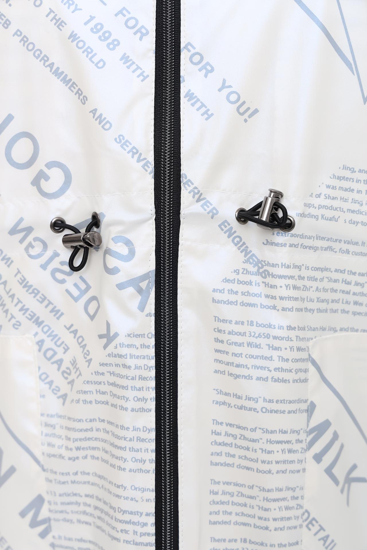 Принт в виде газетных страниц придает этой ветровке уникальность и делает ее запоминающейся деталью гардероба. Свободный крой не сковывает движения, а капюшон защищает от непогоды. Ветровка идеально подойдет для прогулок по городу, путешествий и активного отдыха на природе.