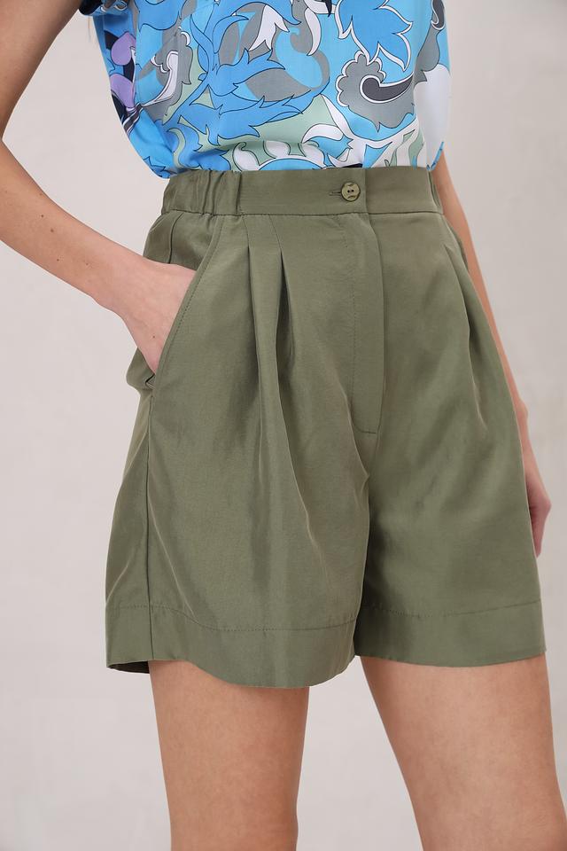 Шорты Beatris цвета хаки — стильная и удобная модель с высокой посадкой и декоративными складками. Изготовлены из сочетания полиамида и вискозы, обеспечивающих комфорт и практичность. Состав: полиамид 70%, вискоза 30%