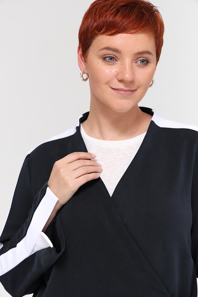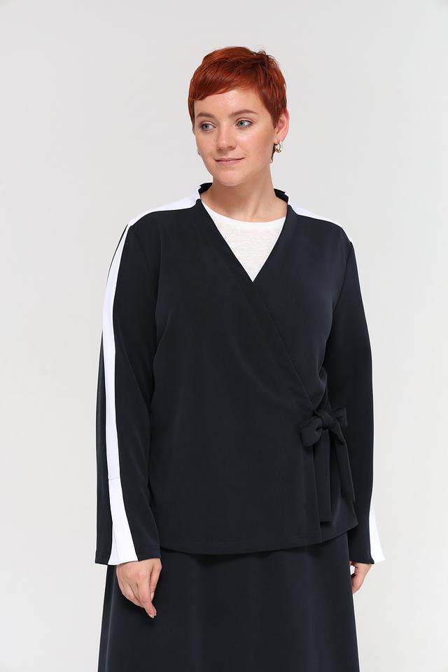 Чёрный жакет Beatris с контрастными белыми полосками на рукавах выполнен из мягкой и приятной к телу ткани. Модель с запахом и поясом создает женственный силуэт, а удобный крой обеспечивает комфорт в носке. Состав: модал 50%, полиэстер 40%, эластан 10%