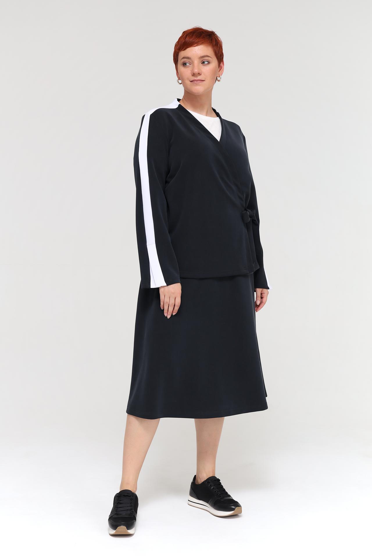 Элегантный жакет Beatris – идеальное дополнение к вашему гардеробу. Модель выполнена в стиле кимоно и дополнена контрастной белой полосой на рукавах и плечах, что придает ей современный и стильный вид. Жакет завязывается на пояс, подчеркивая изящность силуэта. Прекрасно подойдет как для повседневных образов, так и для особых случаев, добавляя уверенности и шарма.