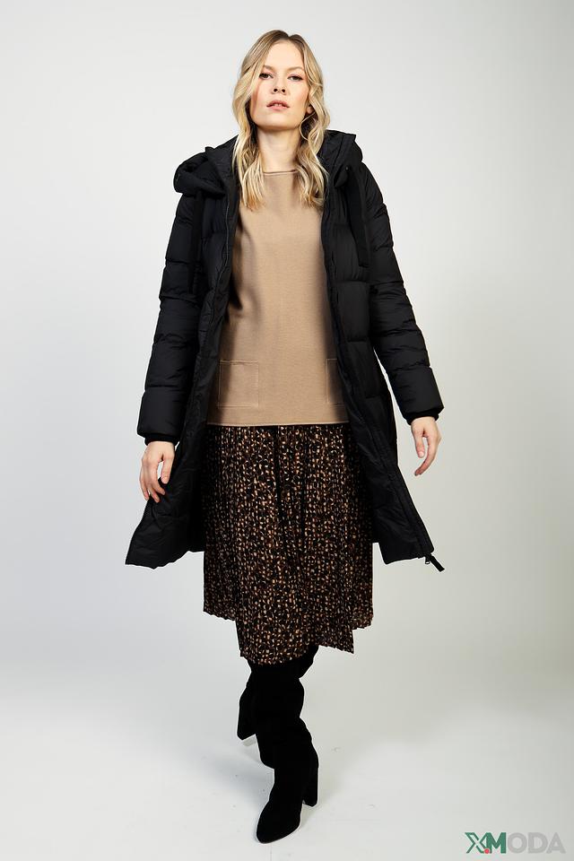 Пальто имеет удобный капюшон, который защитит от ветра и непогоды. Застежка-молния позволяет быстро и легко надевать и снимать пальто. Модель имеет два боковых кармана.