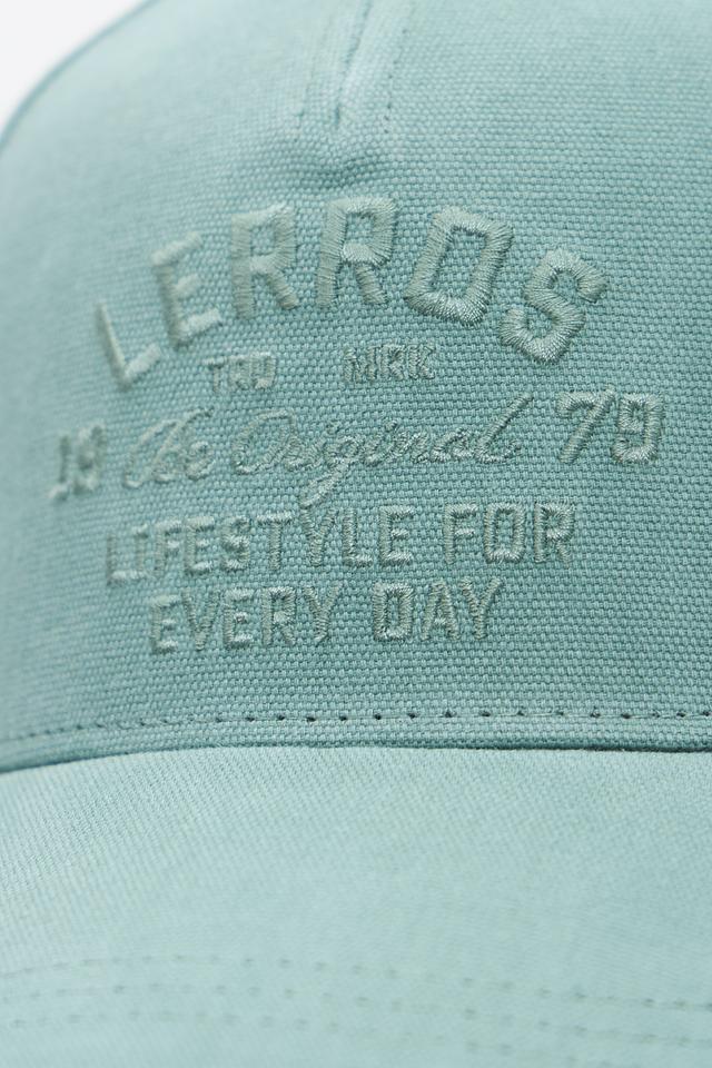 Кепка имеет классический крой с небольшим козырьком и оформлена вышивкой с логотипом бренда Lerros спереди. Мятный цвет придает ей свежий и современный вид.