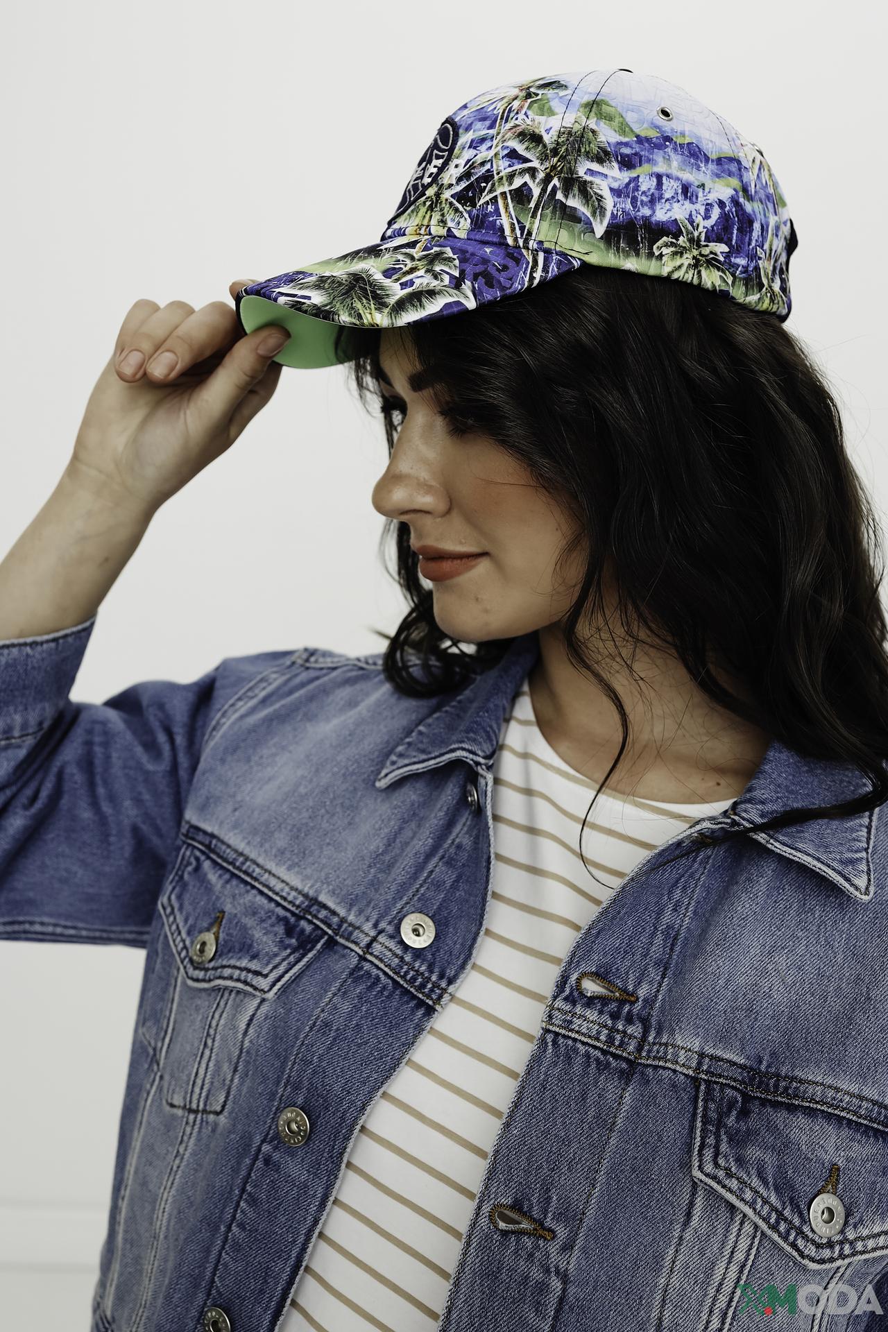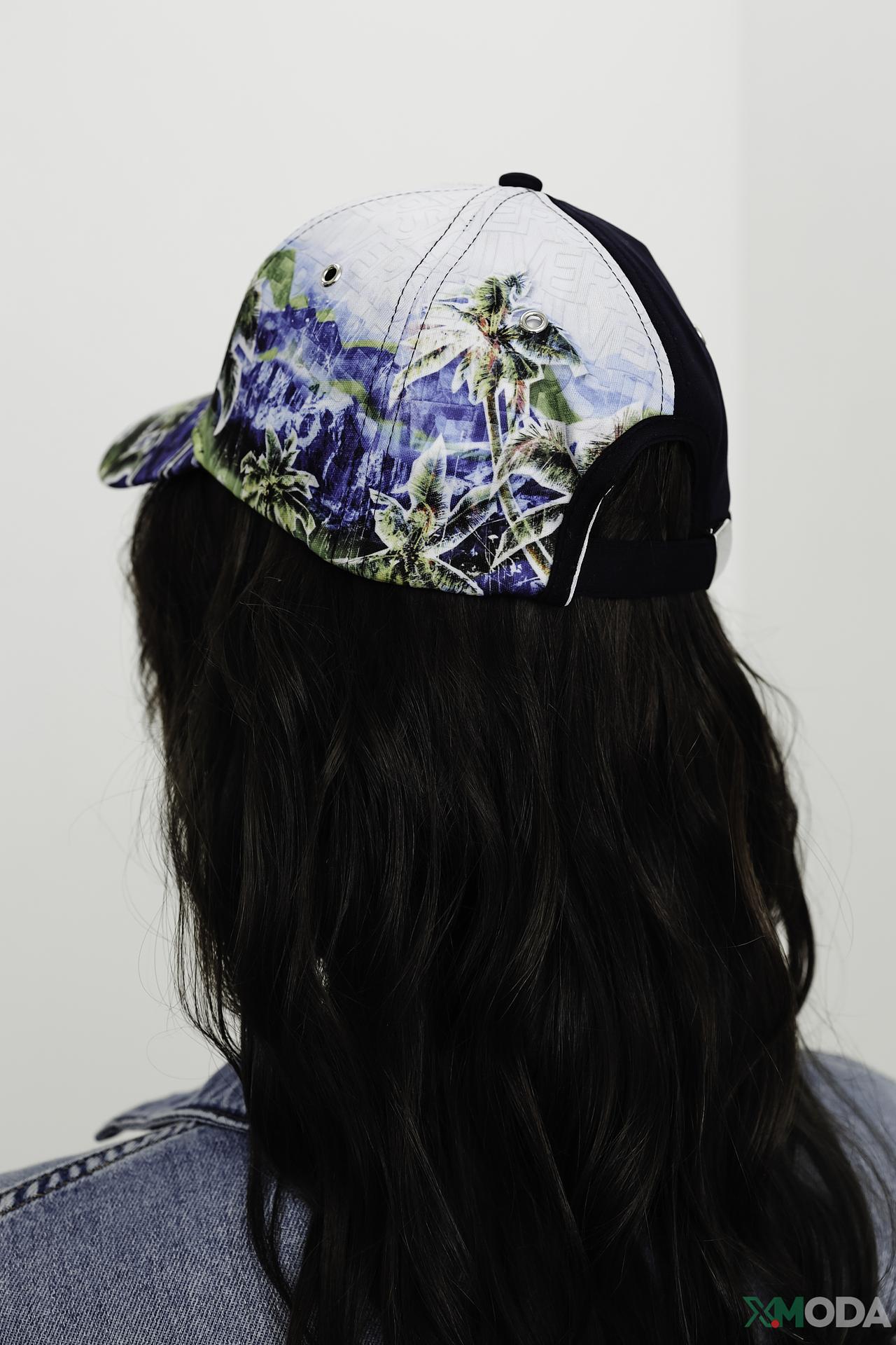 - Дизайн: Яркий тропический рисунок на передней части бейсболки с изображением пальм и синего неба придает ей уникальный и освежающий вид. Тёмно-синяя задняя панель и ярко-зелёная нижняя сторона козырька создают динамичный цветовой контраст.