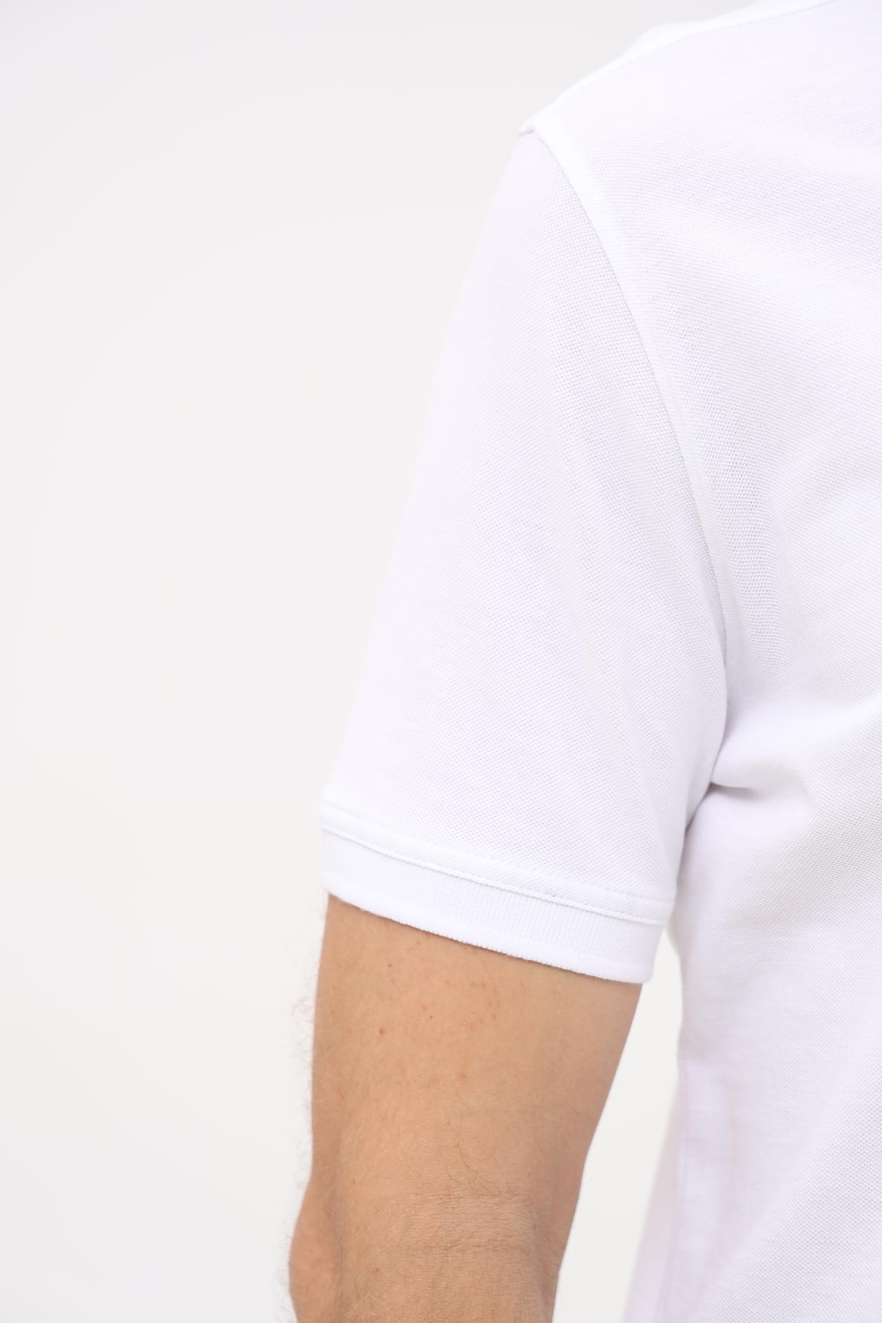 - Дизайн: Чистый белый цвет и лаконичный дизайн делают это поло универсальным. Классический отложной воротник и планка с тремя пуговицами придают изделию законченный и утонченный вид.