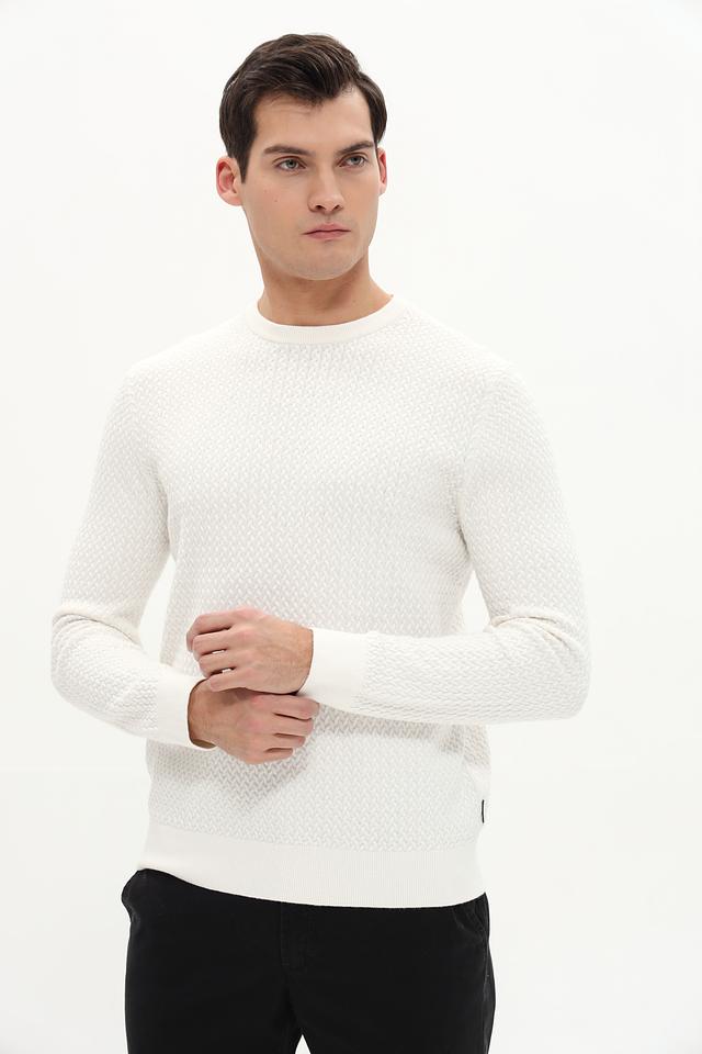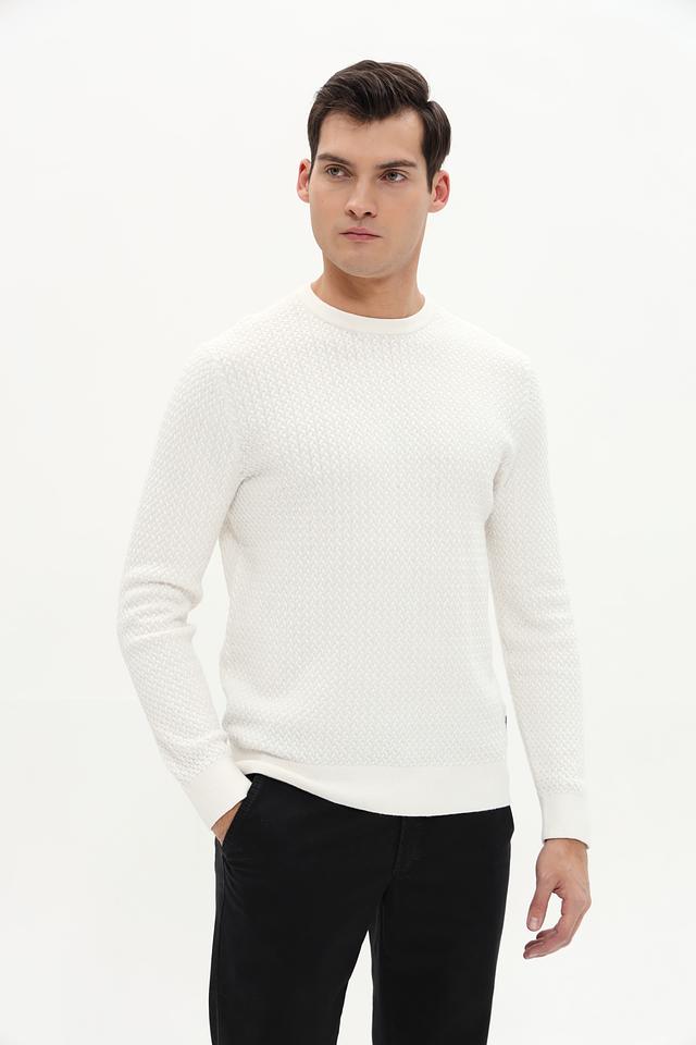 Мужской джемпер Bugatti белого цвета с выразительной текстурой выполнен из мягкого хлопка с добавлением кашемира. Классический крой и лаконичный дизайн делают его универсальным элементом гардероба. Состав: хлопок 95%, кашемир 5%