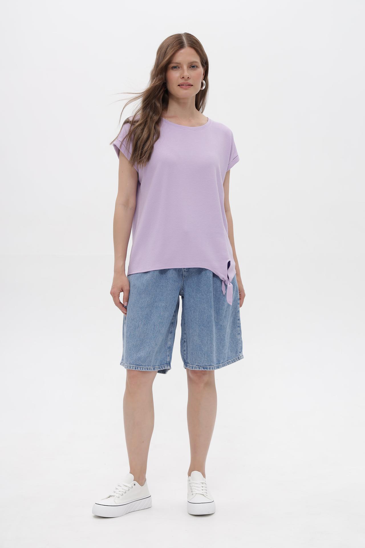 Блуза Betty and Co сиреневая с декоративным узлом и отворотами