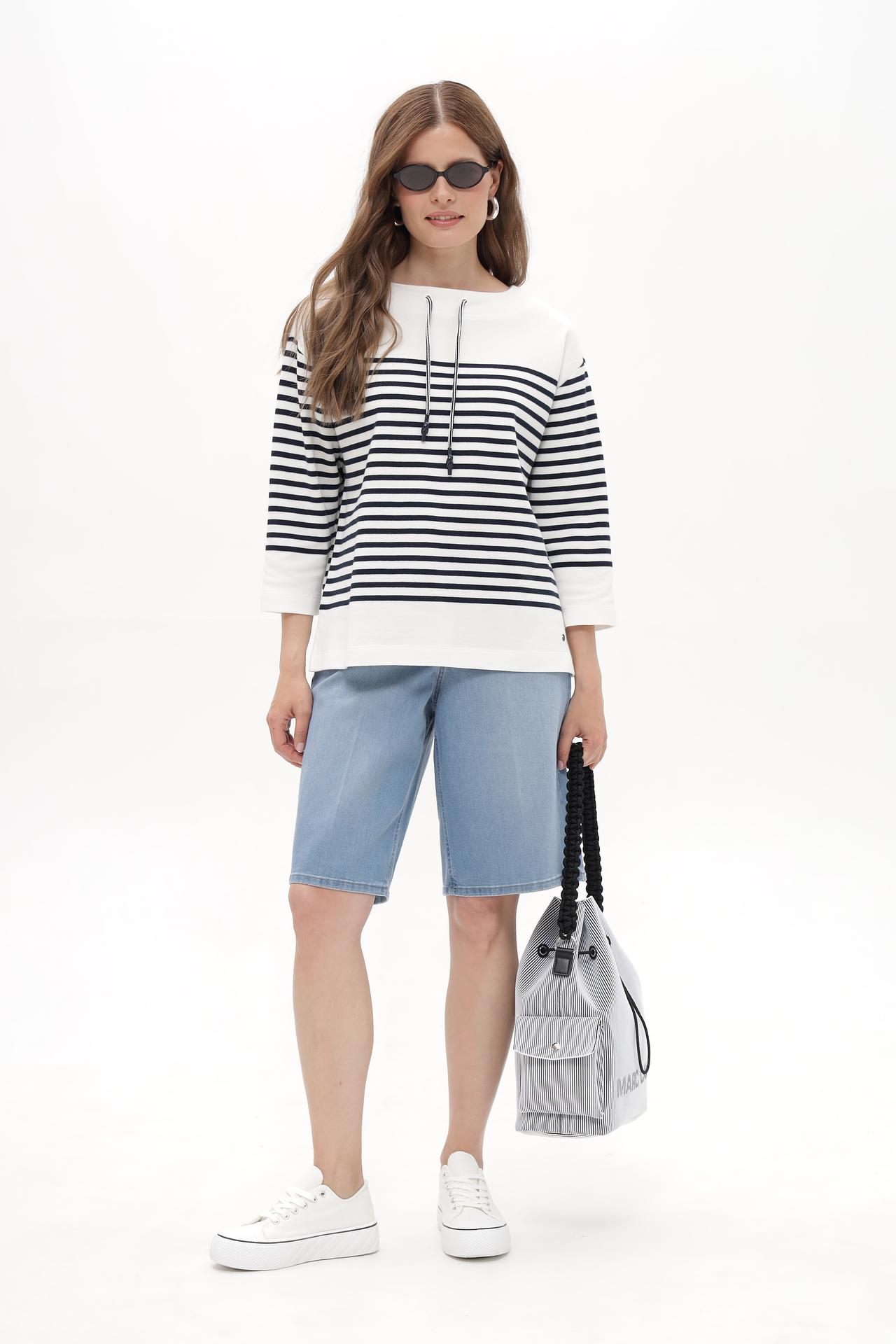 - Универсальный дизайн. Пуловер в полоску – это вечная классика, которая всегда актуальна. Его легко адаптировать под любой стиль и случай.