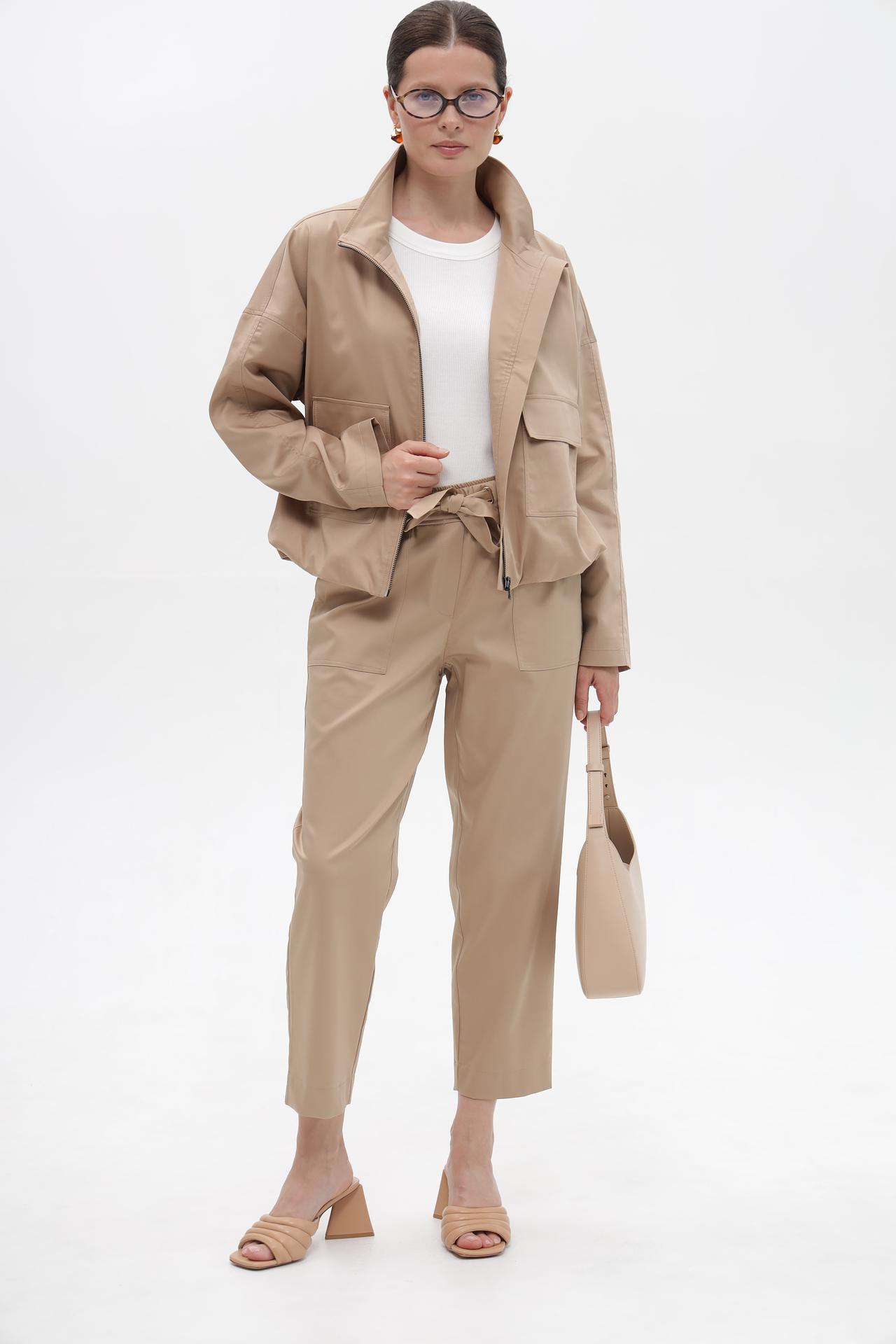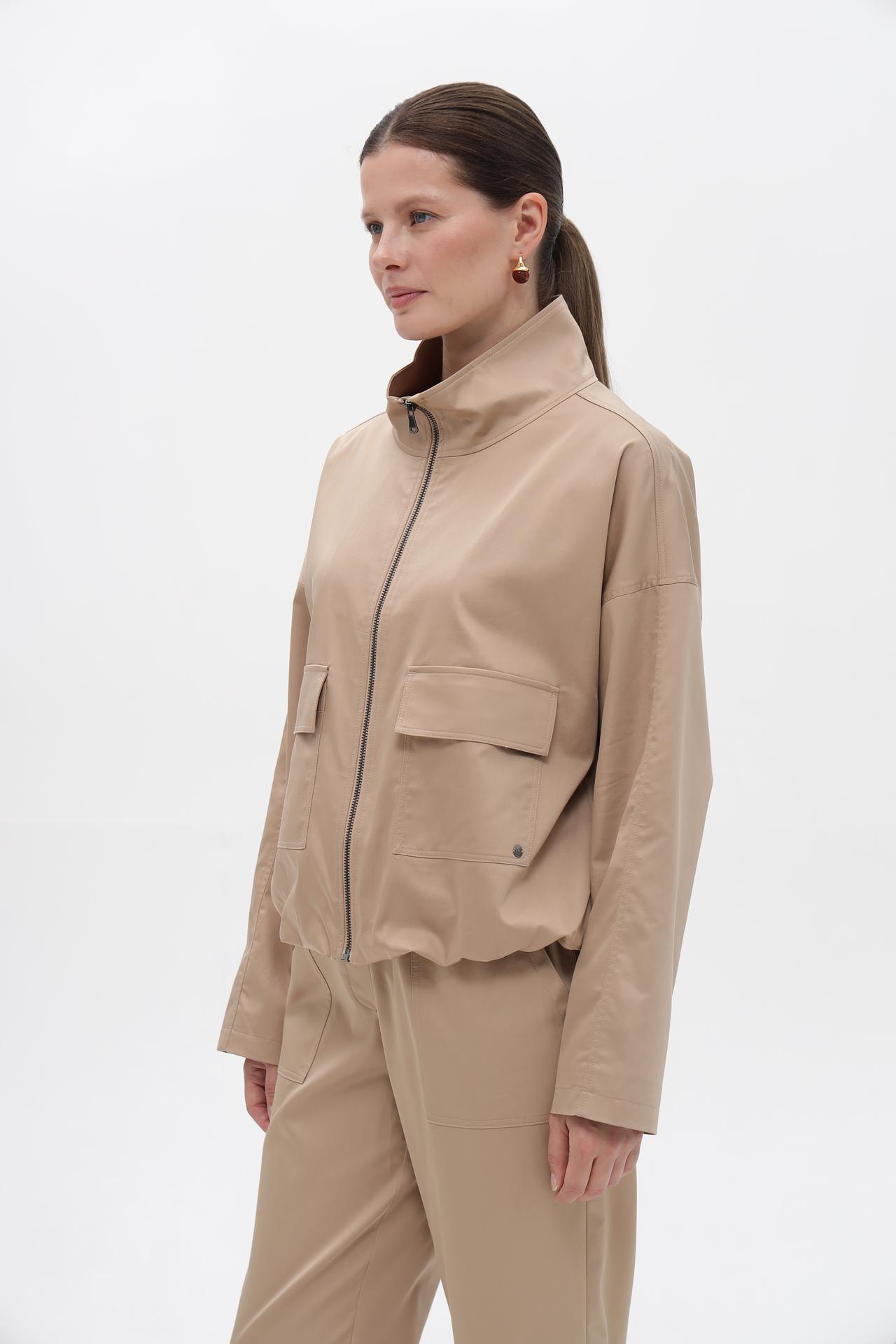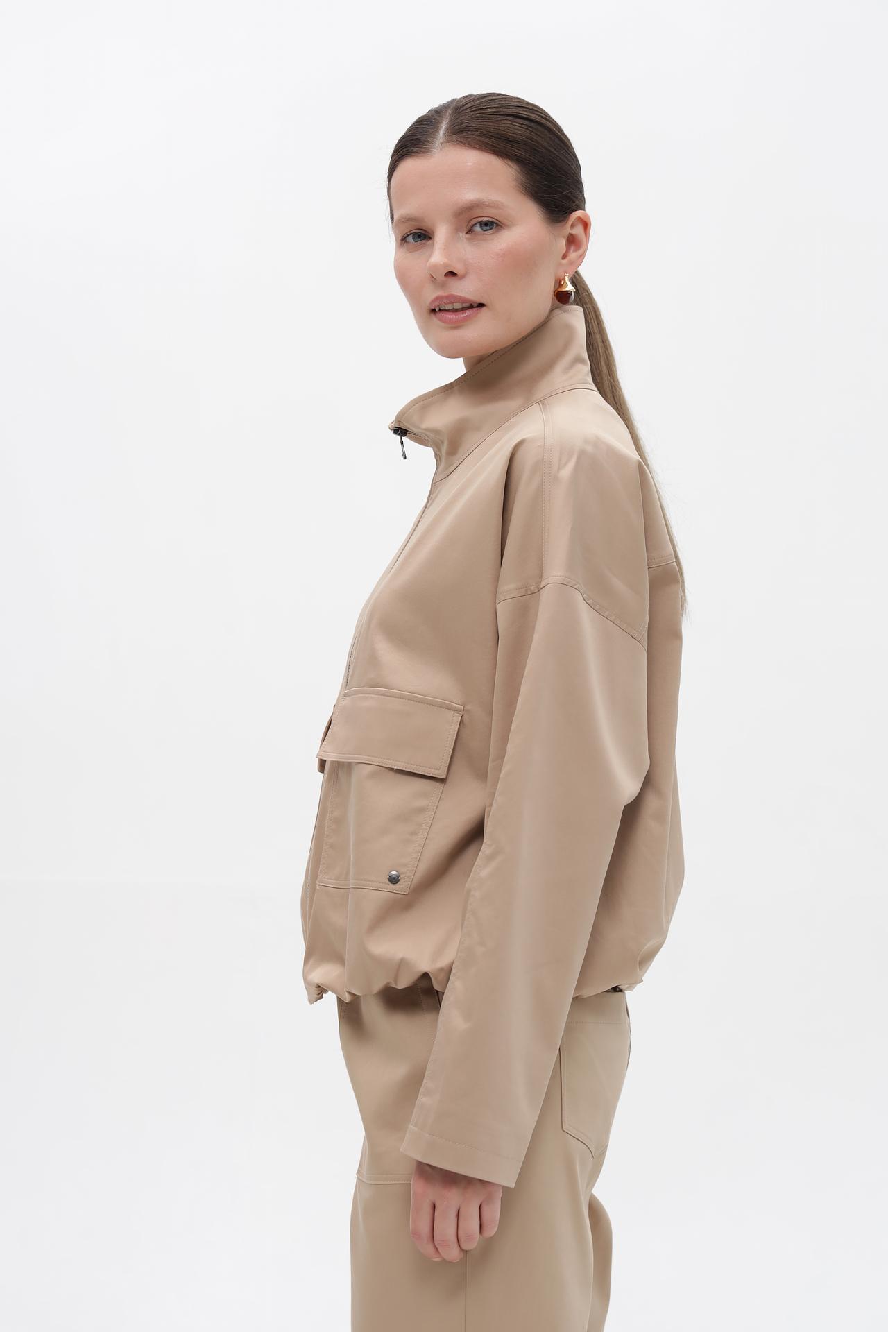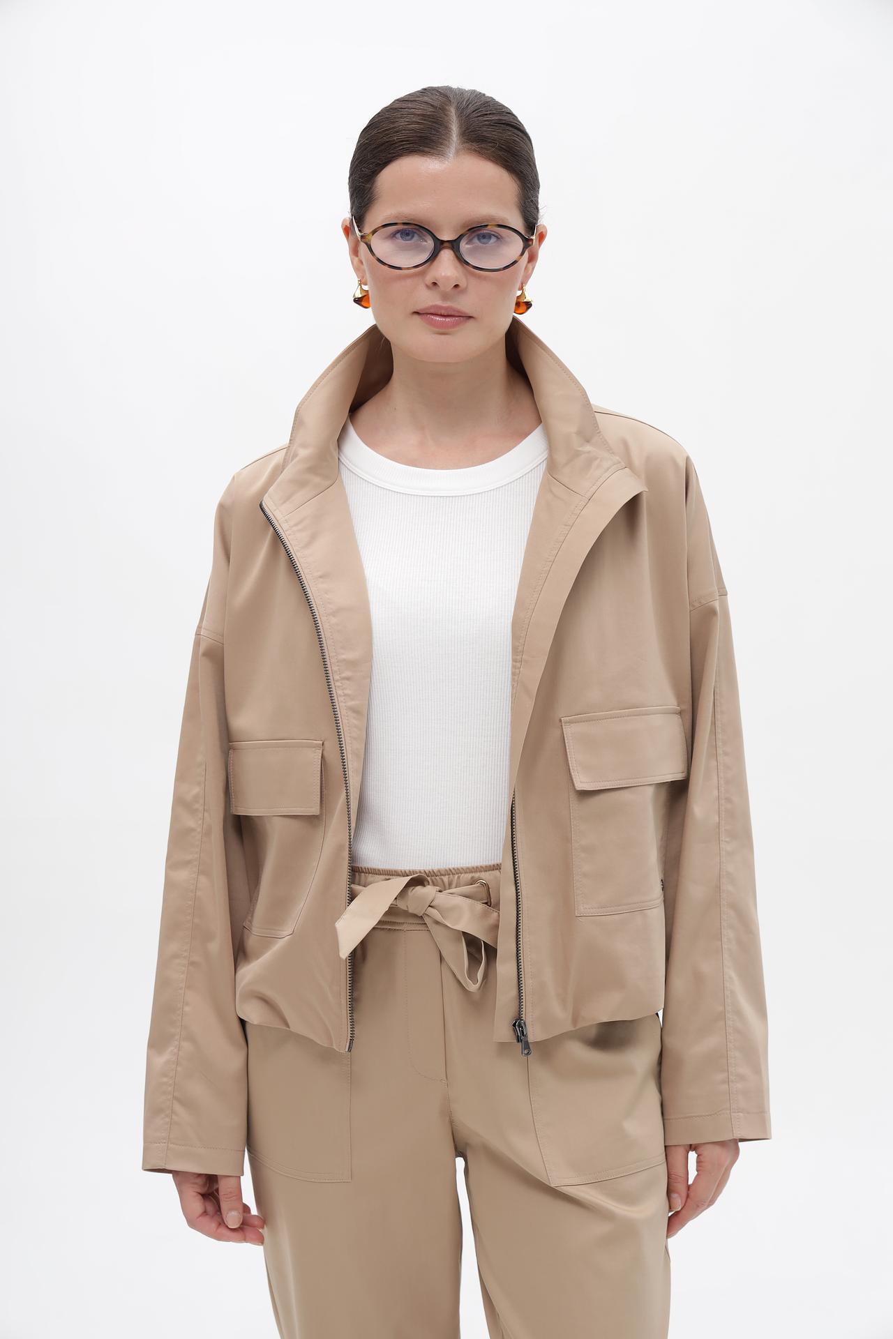 - Детали: Два накладных кармана с клапанами на груди добавляют функциональности и акцентируют внимание на дизайне. Воротник-стойка придает образу завершенность.