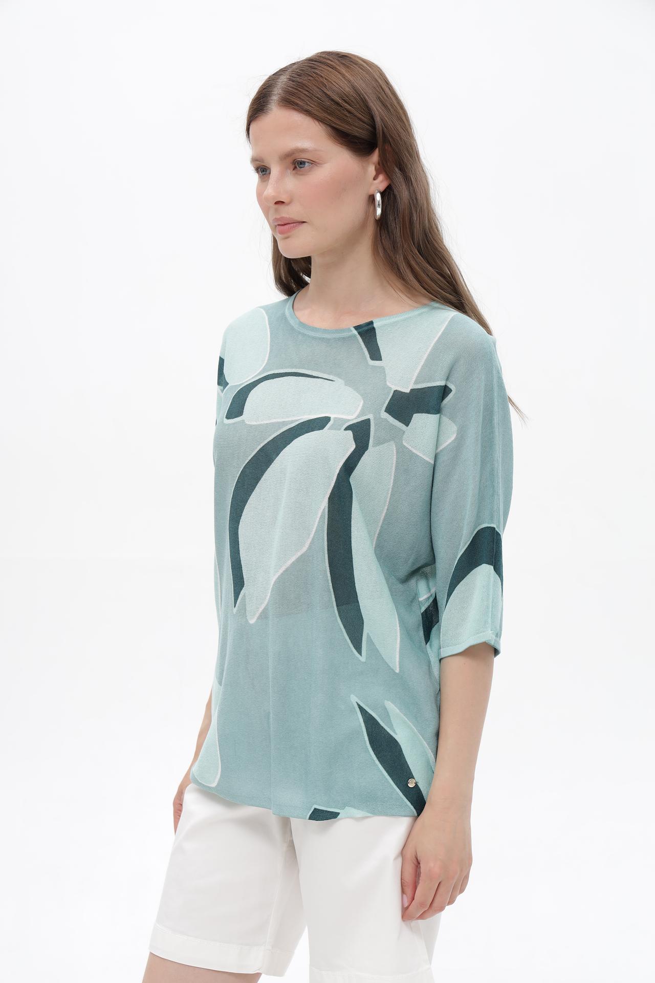 Пуловер Betty and Co Голубой с абстрактным принтом