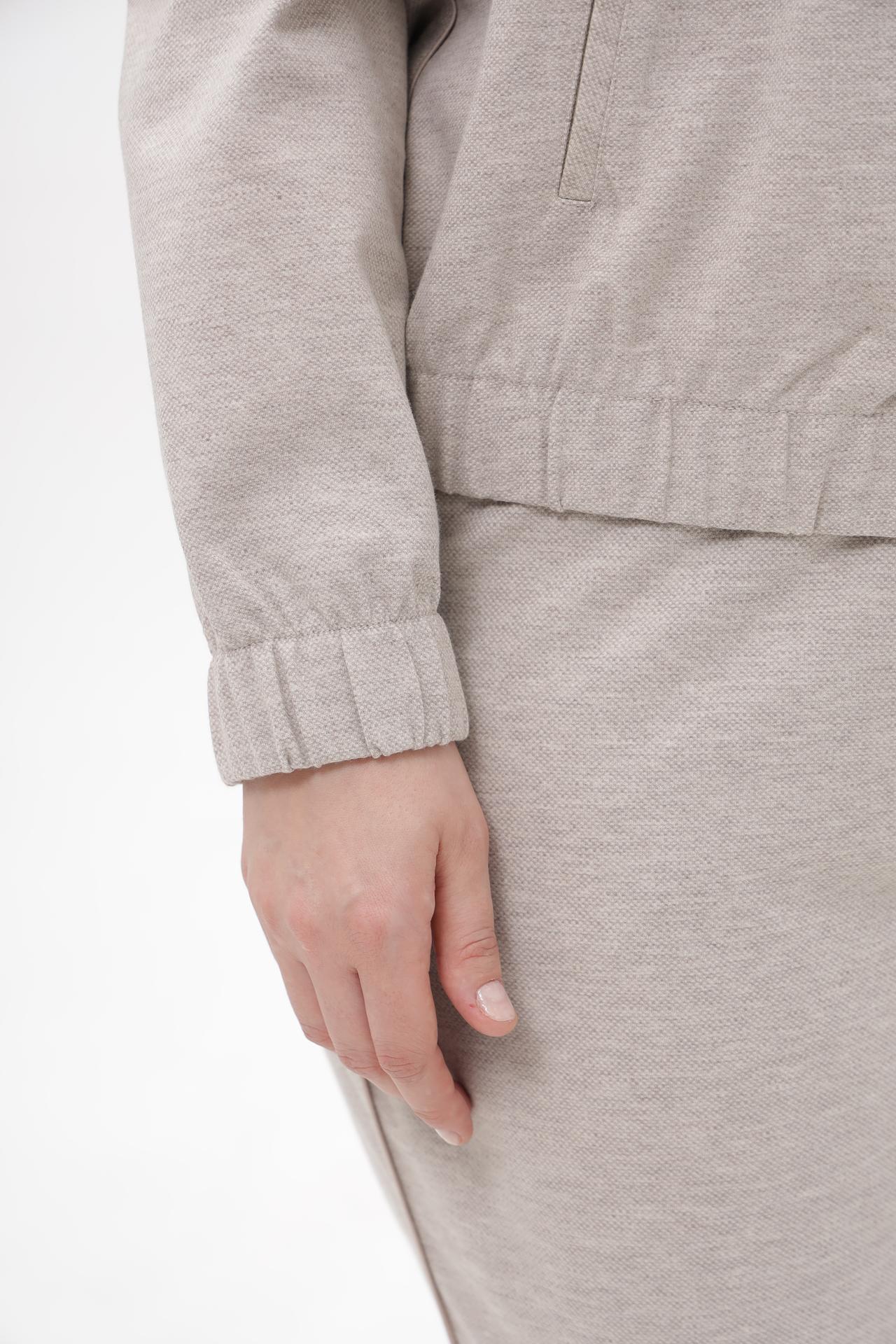 - Дизайн: Жакет выполнен в стиле бомбер, что придает ему современный и спортивный вид. Классический воротник и застежка на кнопки делают его универсальным элементом одежды.