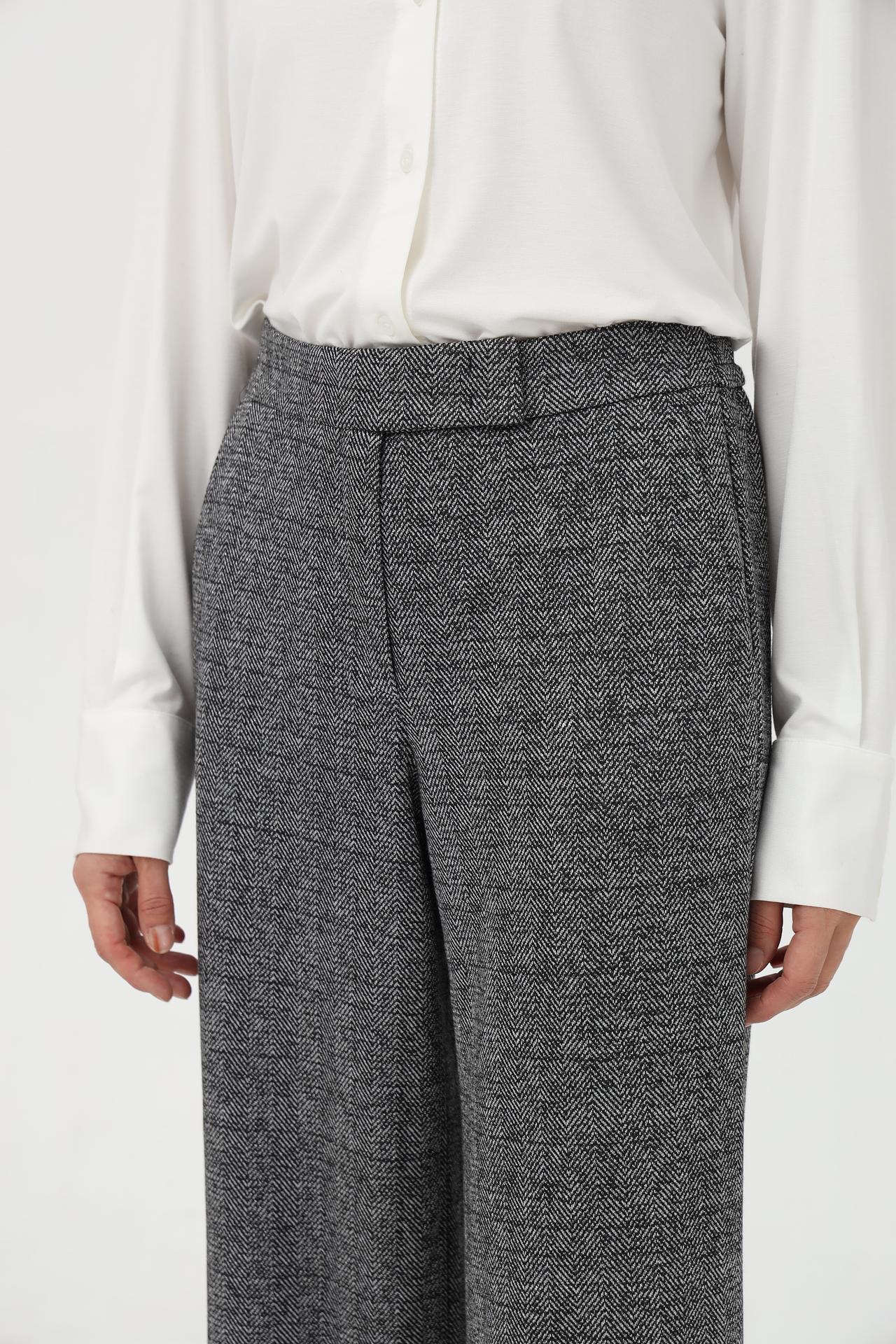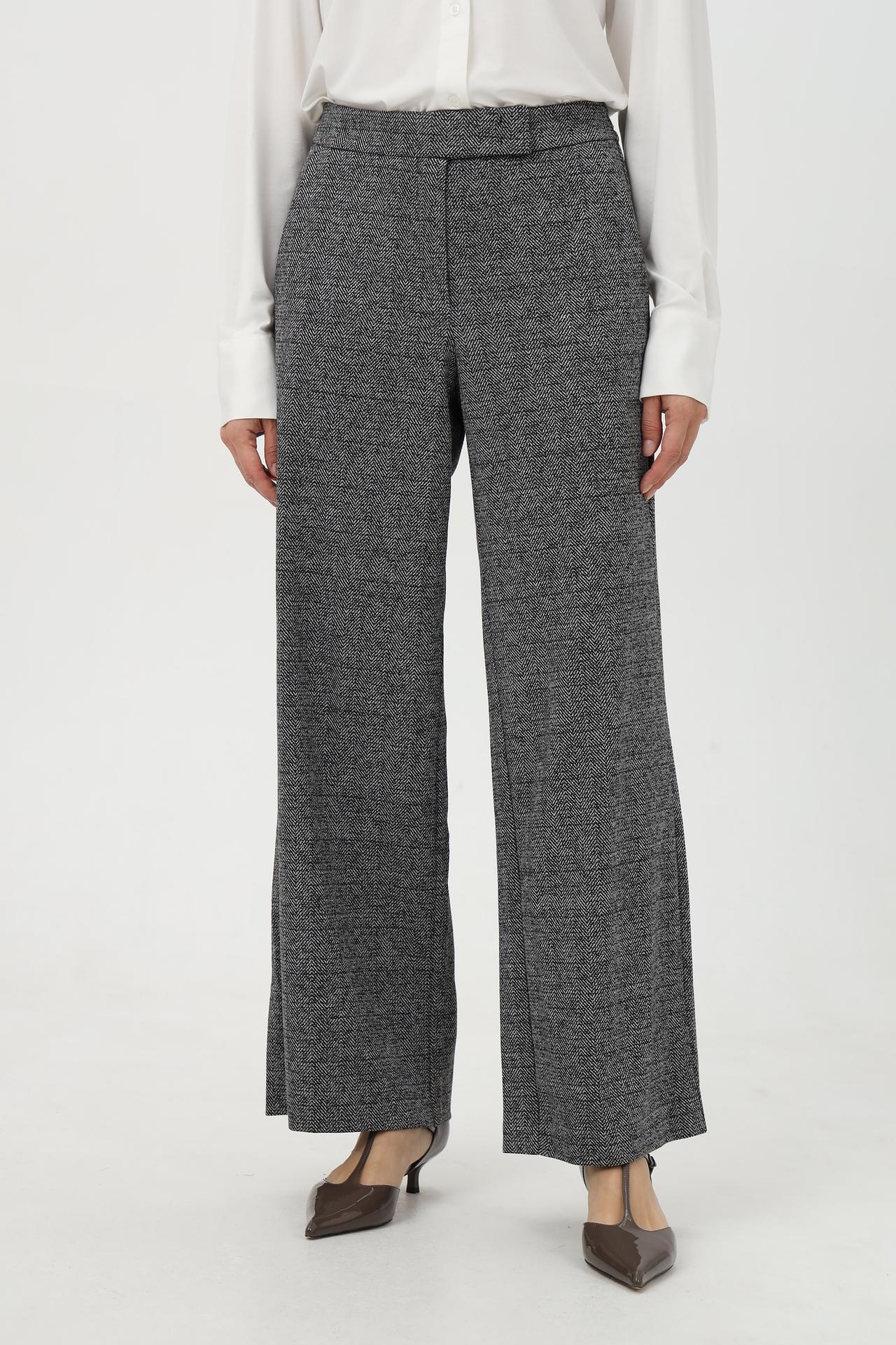 - Крой: Широкие брюки прямого силуэта визуально удлиняют ноги и создают элегантный образ.