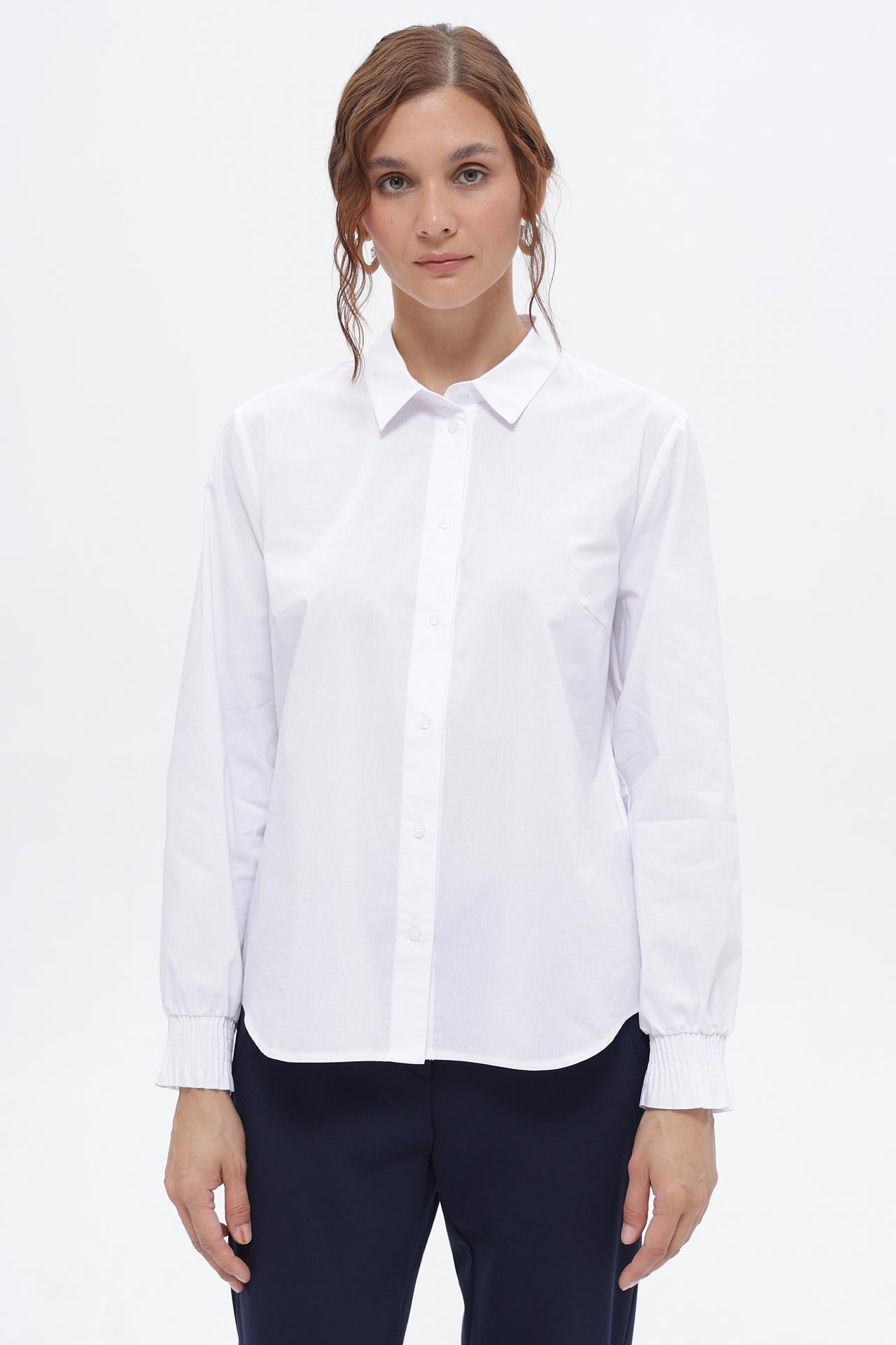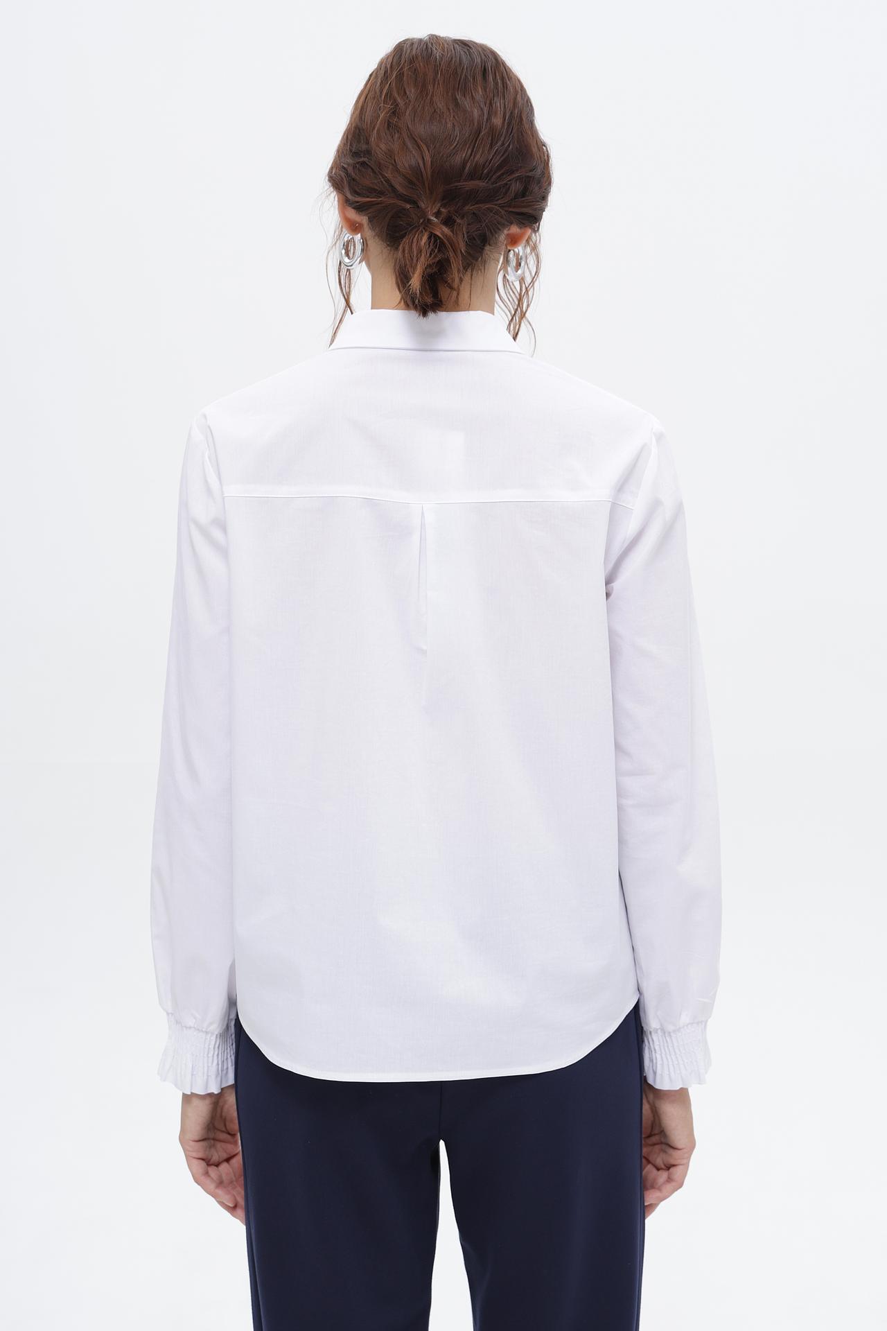 Благодаря уникальному сочетанию волокон, блуза обладает превосходными эксплуатационными характеристиками. Хлопок обеспечивает воздухопроницаемость и приятные тактильные ощущения, полиэстер добавляет износостойкости и легкости в уходе, а эластан гарантирует идеальную посадку по фигуре и свободу движений.