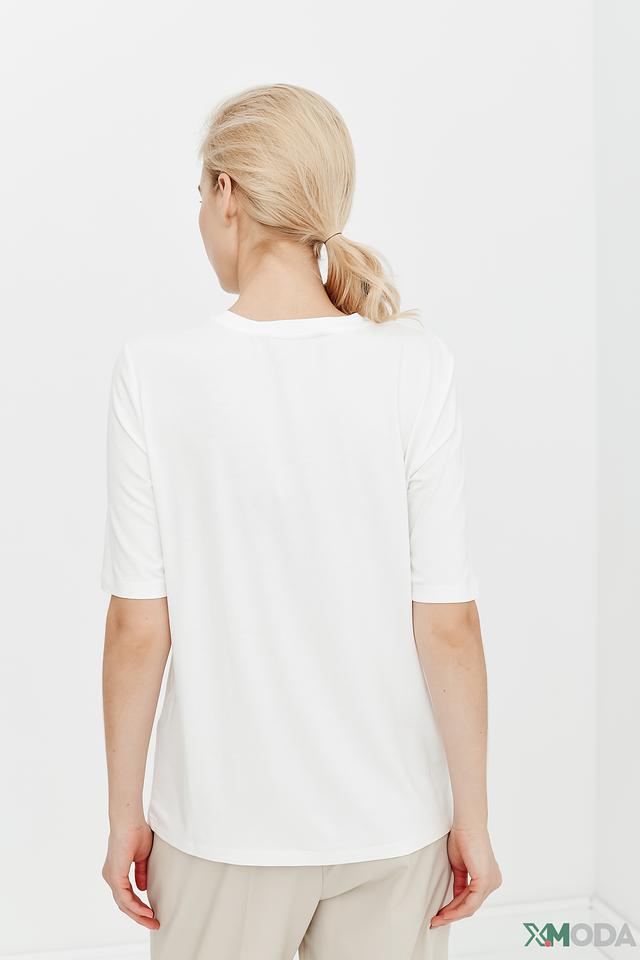 Белая футболка Betty and Co с коротким рукавом и ярким цветочным принтом. Изготовлена из мягкой вискозы с добавлением эластана для комфорта и хорошей посадки. Идеальный выбор для создания повседневных образов. Состав: вискоза 92%, эластан 8%