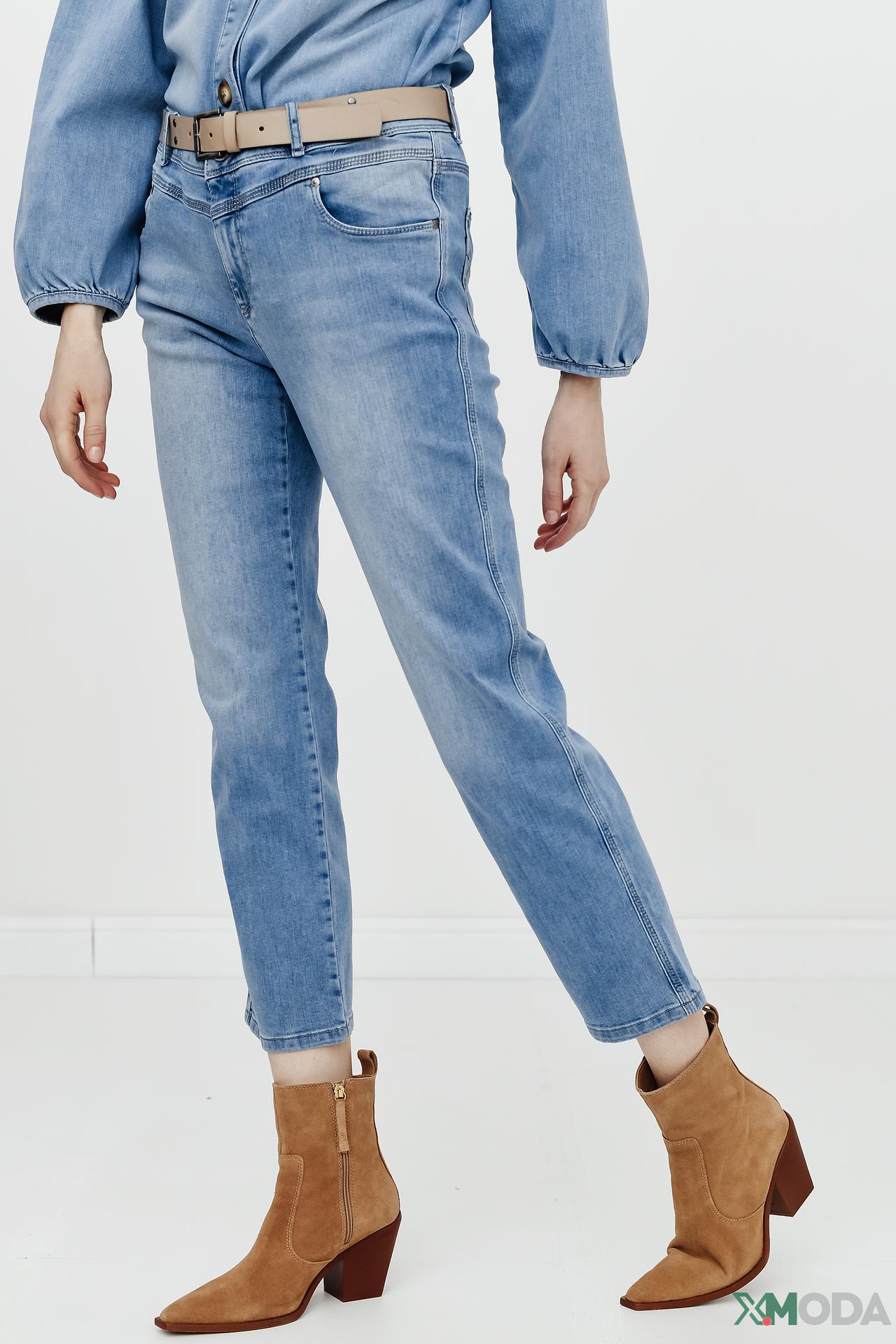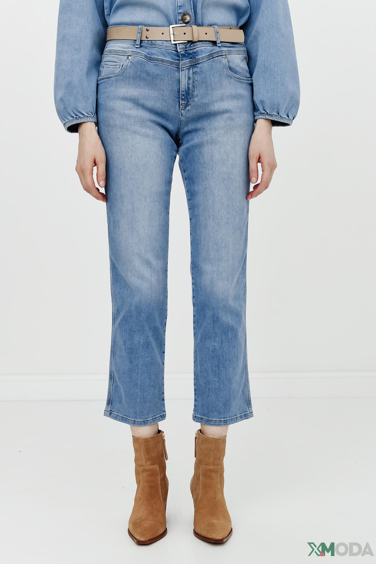 - Крой: Прямой крой с высокой посадкой визуально удлиняет ноги и подчеркивает талию.