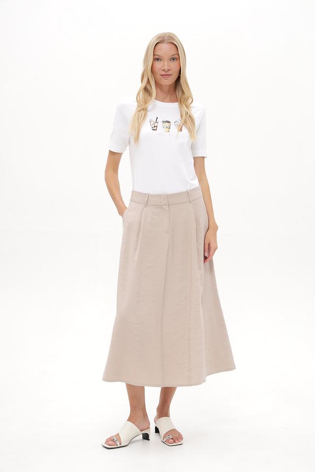 Состав: 95% хлопок, 5% эластан. Эта футболка идеально подходит для создания повседневных образов и легко сочетается с юбками, брюками и джинсами. Стильная и практичная модель для любителей кофе и комфорта.