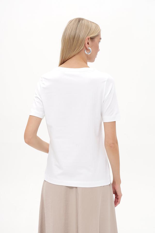 Базовая белая футболка от Betty and Co станет отличным дополнением к вашему гардеробу. Модель имеет прямой крой, короткие рукава и круглый вырез горловины.