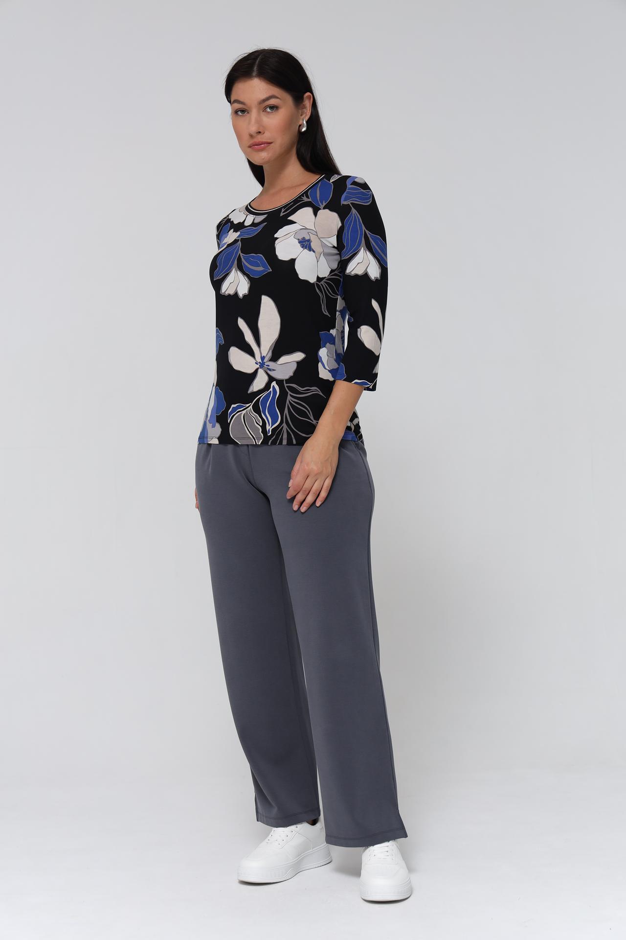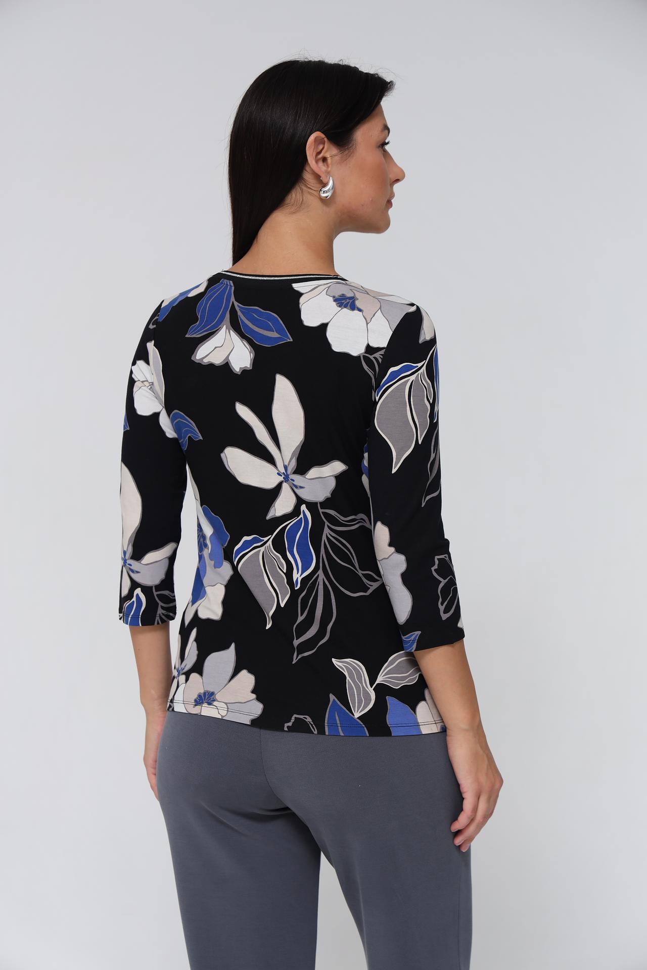 - Дизайн: Оригинальный цветочный принт в синих, белых и серых тонах на черном фоне. Принт выглядит свежо и современно, добавляя изюминку в ваш стиль.