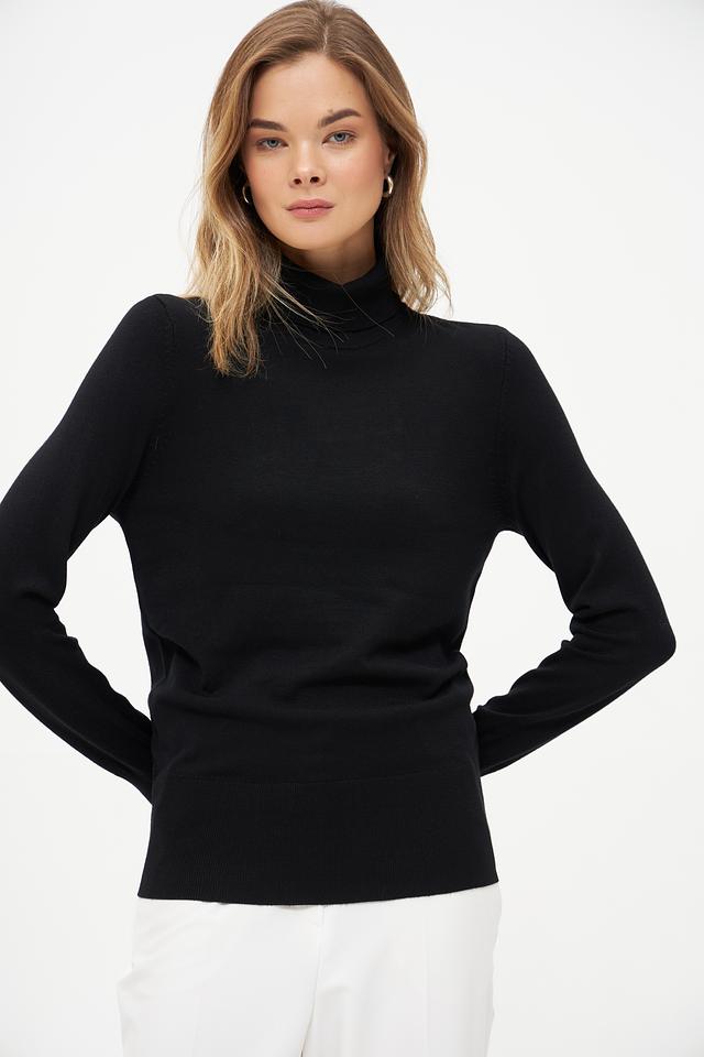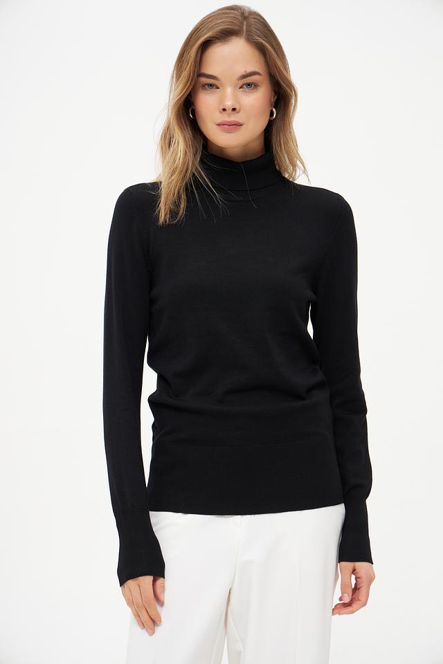 Водолазка изготовлена из мягкого и приятного к телу трикотажа, в составе которого 72% вискоза и 28% полиамид. Этот материал обеспечивает комфорт при носке и хорошо сохраняет форму изделия.