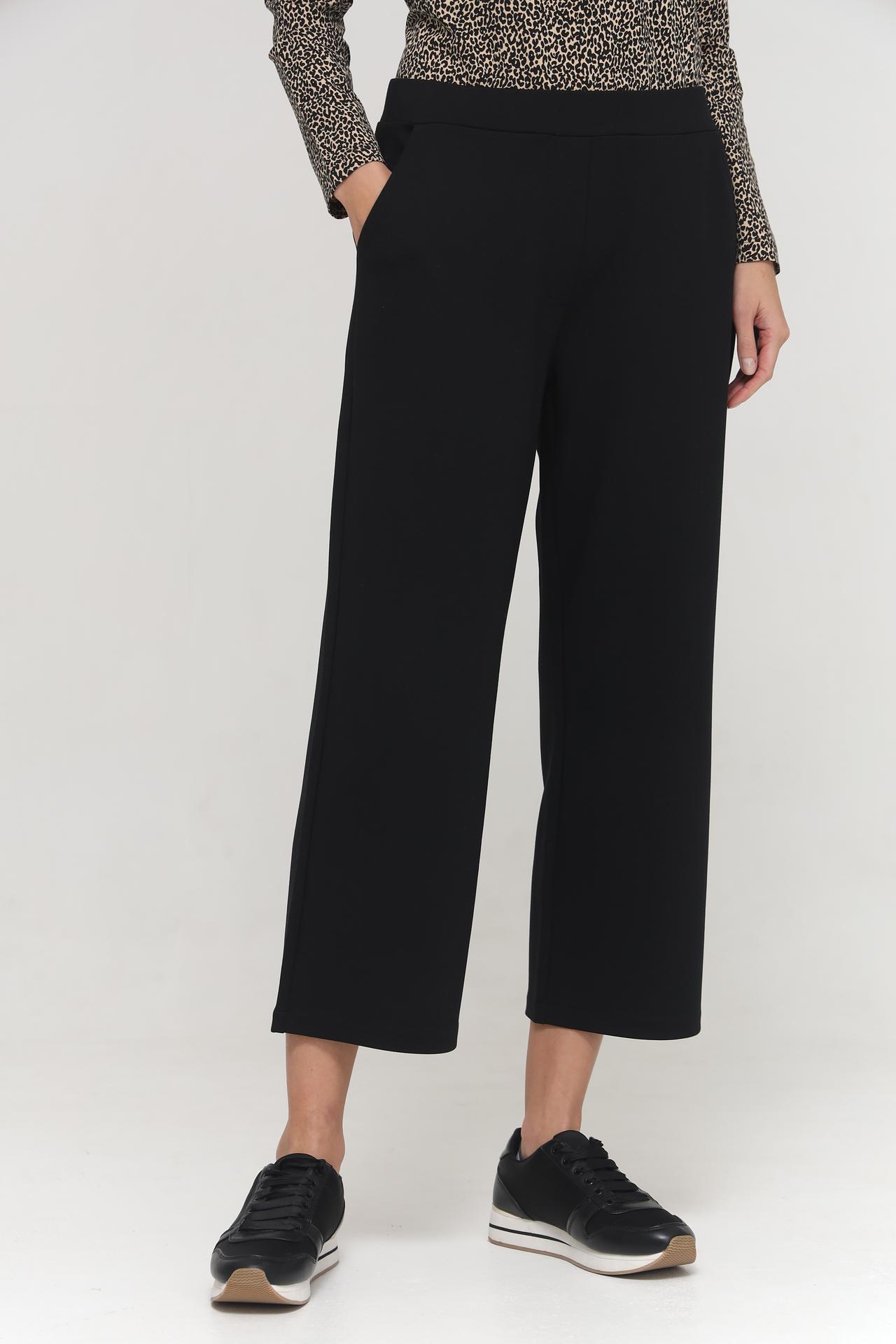 - Универсальный дизайн. Брюки выполнены в классическом черном цвете и имеют прямой крой с легким клешем, что делает их подходящими для различных стилей и ситуаций. Они легко вписываются в офисный дресс-код, а также подходят для повседневных и вечерних выходов.
