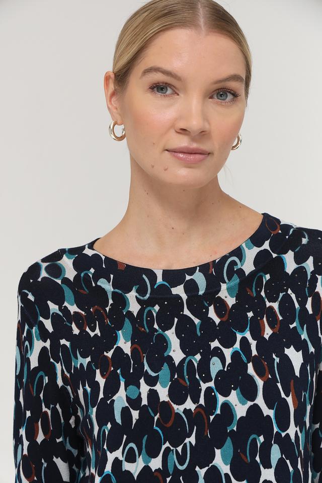 Женский пуловер Betty Barclay темно-синего цвета с оригинальным геометрическим принтом. Модель выполнена из мягкой вискозы с добавлением полиамида, что обеспечивает комфорт и приятные тактильные ощущения. Состав: вискоза 80%, полиамид 20%
