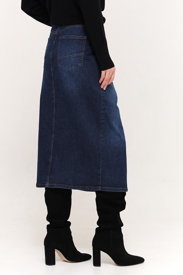 Эта юбка от Betty Barclay выполнена из плотного денима синего цвета, сочетающего в себе комфорт и стиль. Модель имеет классический крой длиной миди, который подчеркивает фигуру и подходит для различных случаев.