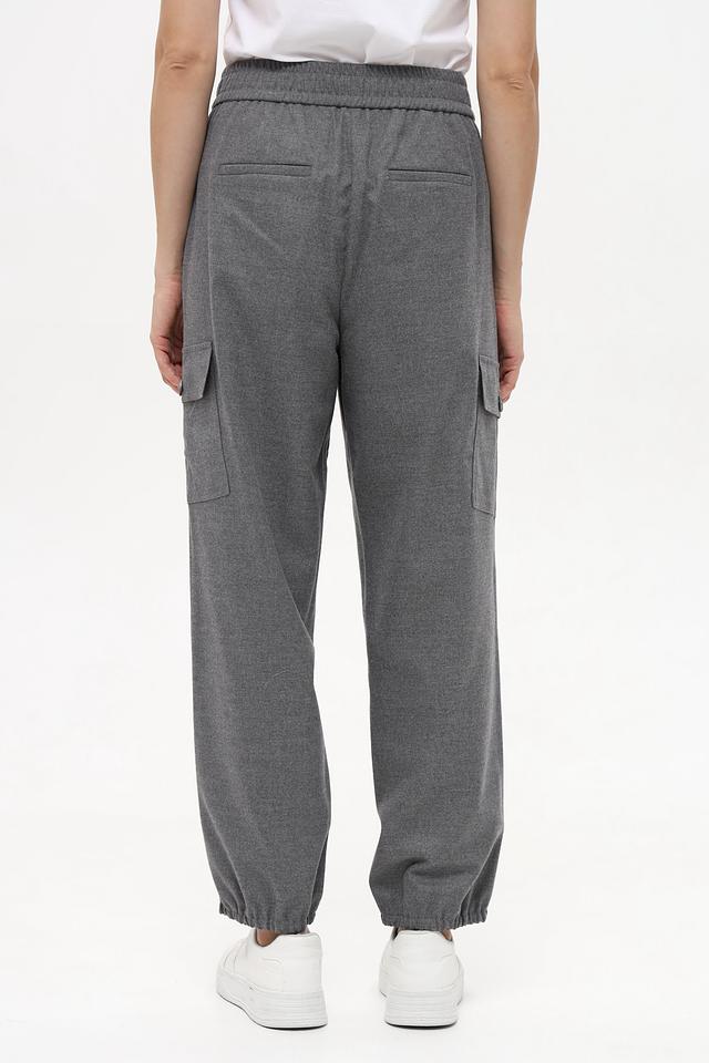 Брюки имеют эластичный пояс с кулиской, что позволяет регулировать посадку. По бокам расположены функциональные карманы-карго, добавляющие образу практичности и стиля. Низ брюк собран на манжет с кулиской.