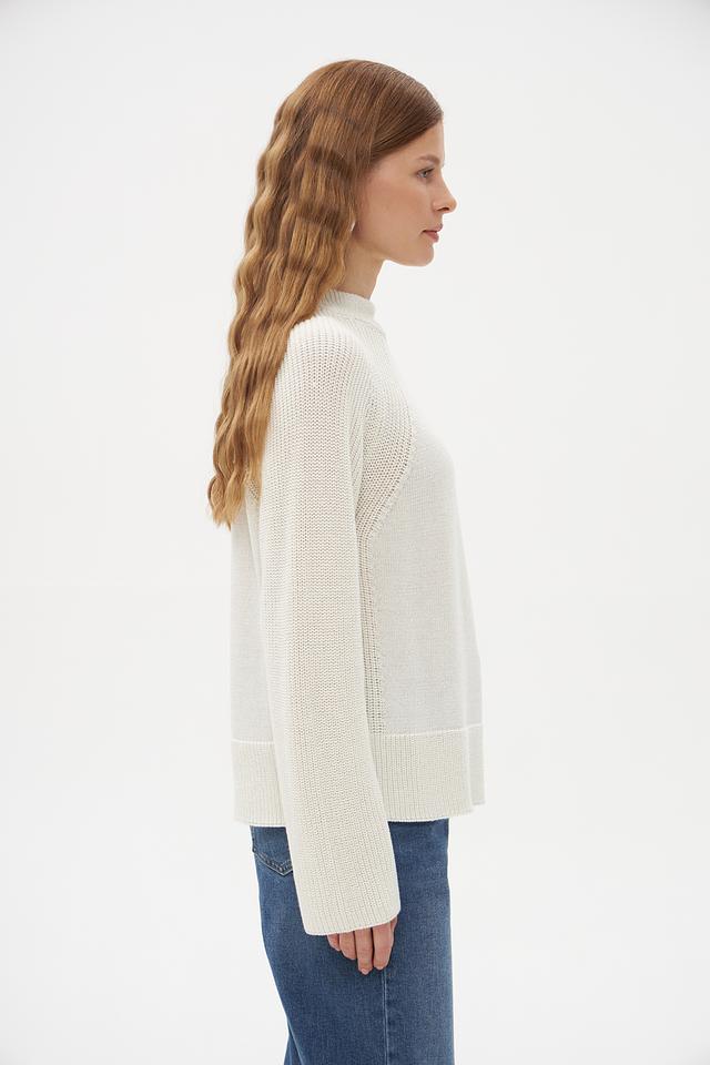Особенностью данного пуловера является оригинальная текстура вязания. Рукава и нижняя часть изделия выполнены рельефным узором, который добавляет модели визуальный интерес. Пуловер идеально подойдет для создания повседневных образов, а также для более нарядных вариантов в сочетании с юбкой или брюками.