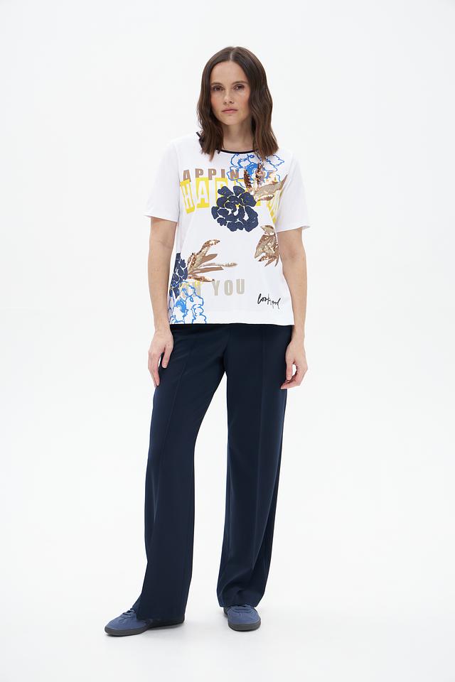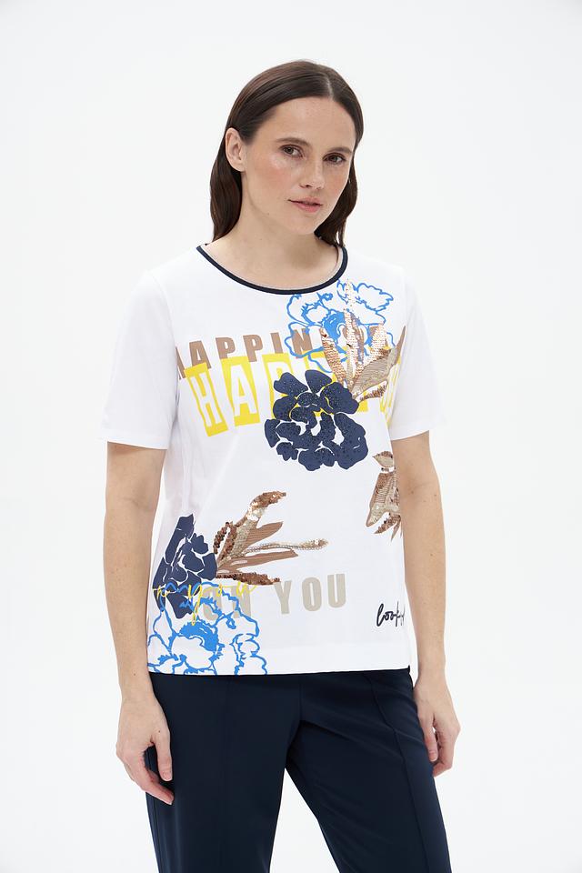 Белая футболка Betty Barclay с ярким цветочным принтом. Изготовлена из 100% хлопка, обеспечивающего комфорт и воздухопроницаемость. Стильный крой и оригинальный дизайн. Состав: хлопок 100%
