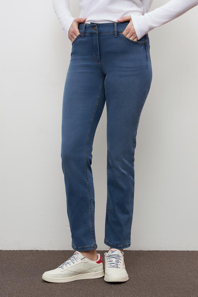 Синие джинсы Betty Barclay классического кроя с эластичным поясом. Модель выполнена из хлопка с добавлением полиэстера и эластана, что обеспечивает комфорт и хорошую посадку по фигуре. Состав: хлопок 64%, полиэстер 29%, эластан 7%