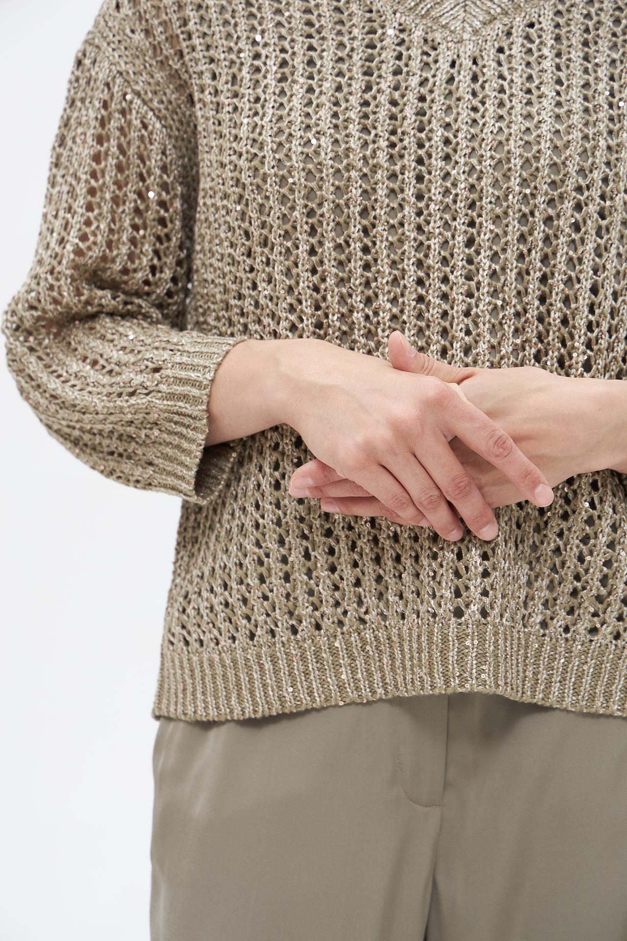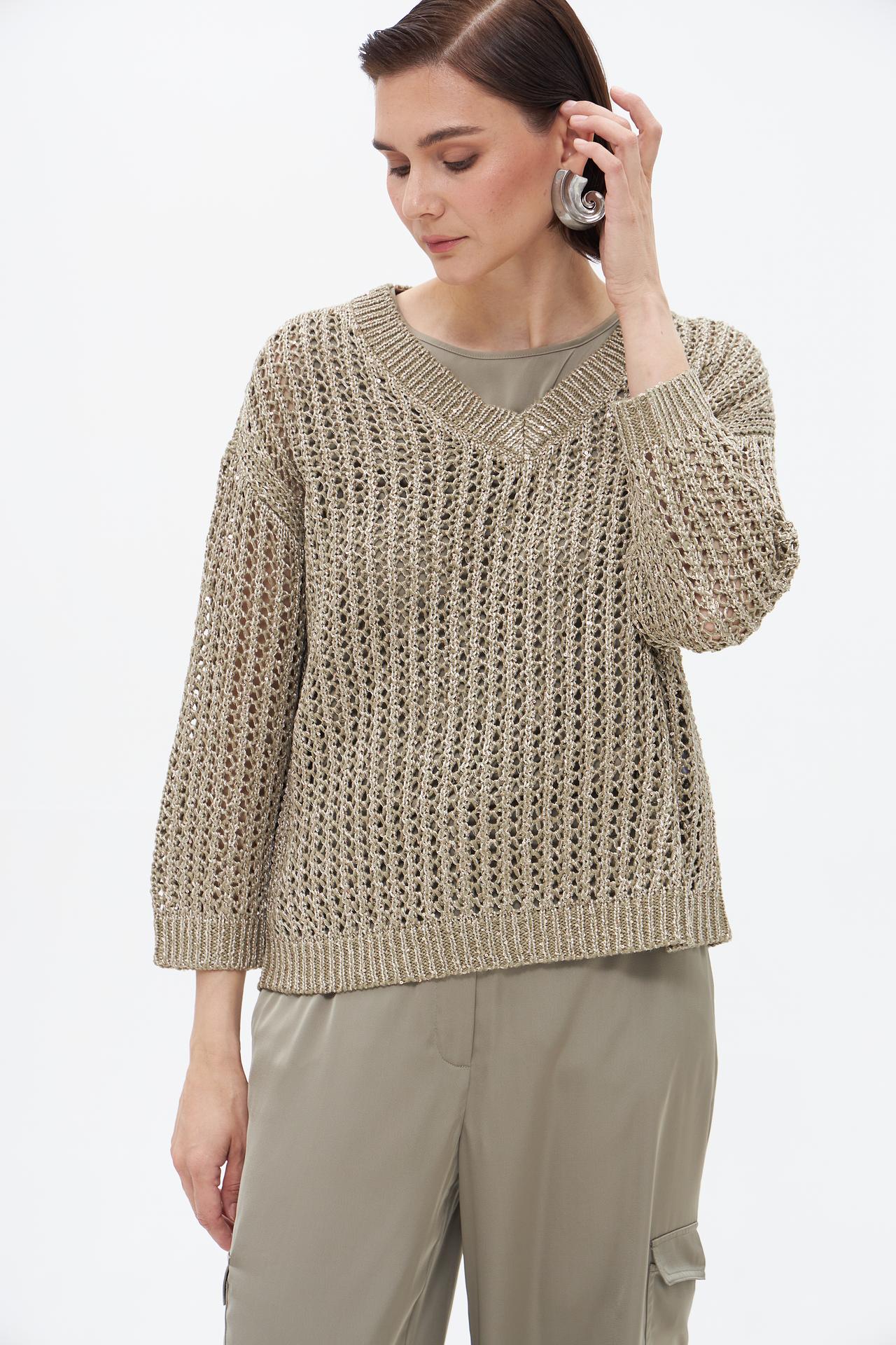 Нежный и воздушный пуловер Betty Barclay – идеальное решение для создания романтичного и женственного образа. Благодаря ажурной вязке, он выглядит легко и непринужденно, а нейтральный бежевый цвет позволяет сочетать его с различными элементами гардероба. Этот пуловер станет прекрасным дополнением к вашему повседневному стилю, добавляя нотку изысканности и комфорта.