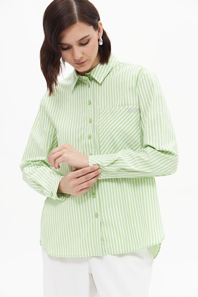 Эта блузка от Betty Barclay станет отличным дополнением к вашему гардеробу. Она выполнена в светлом лаймовом цвете с вертикальной белоснежной полоской, что придает ей свежий и современный вид.