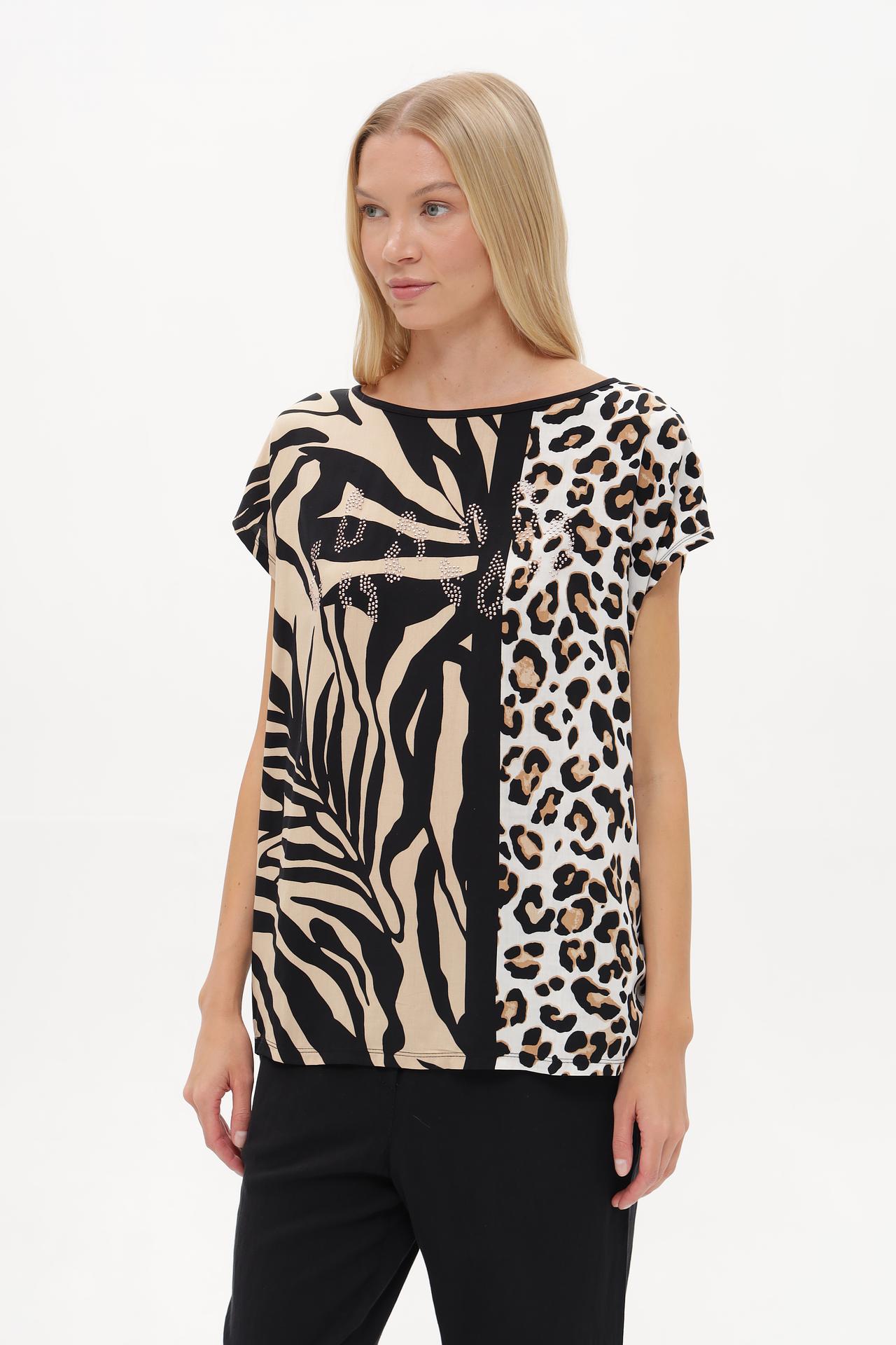 - Принт: Комбинированный анималистичный принт делает эту блузу запоминающейся и модной, идеально подходит для создания смелых и стильных образов.