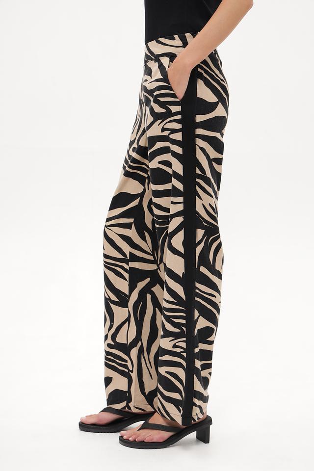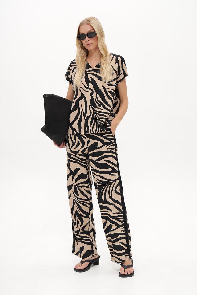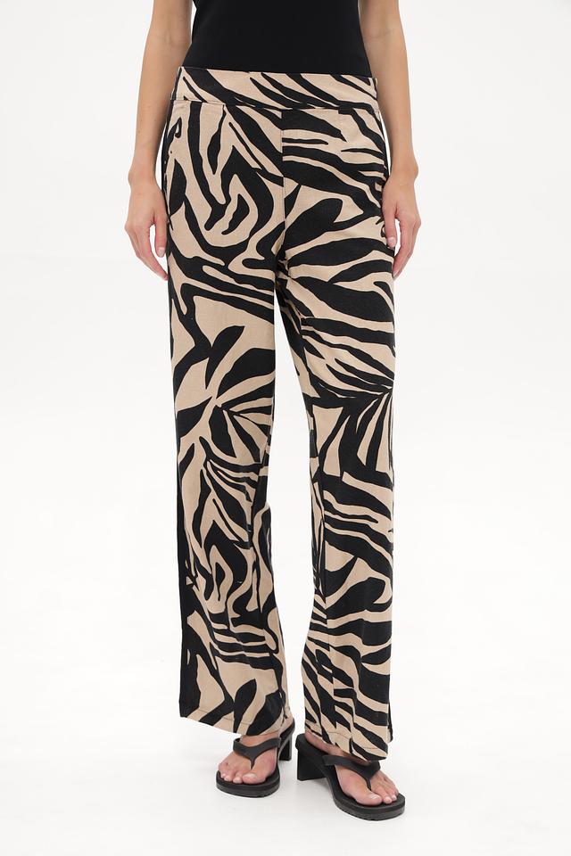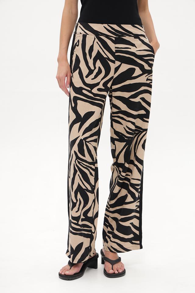 Женские брюки Betty Barclay бежевого цвета с оригинальным принтом в полоску. Модель выполнена из льна с добавлением вискозы для комфорта и лучшей посадки. Состав: лен 55%, вискоза 45%