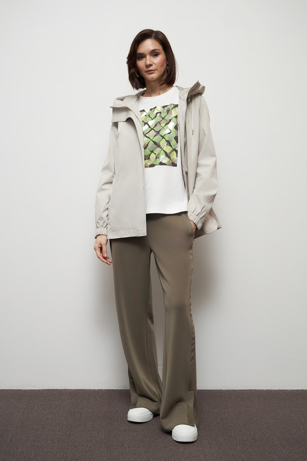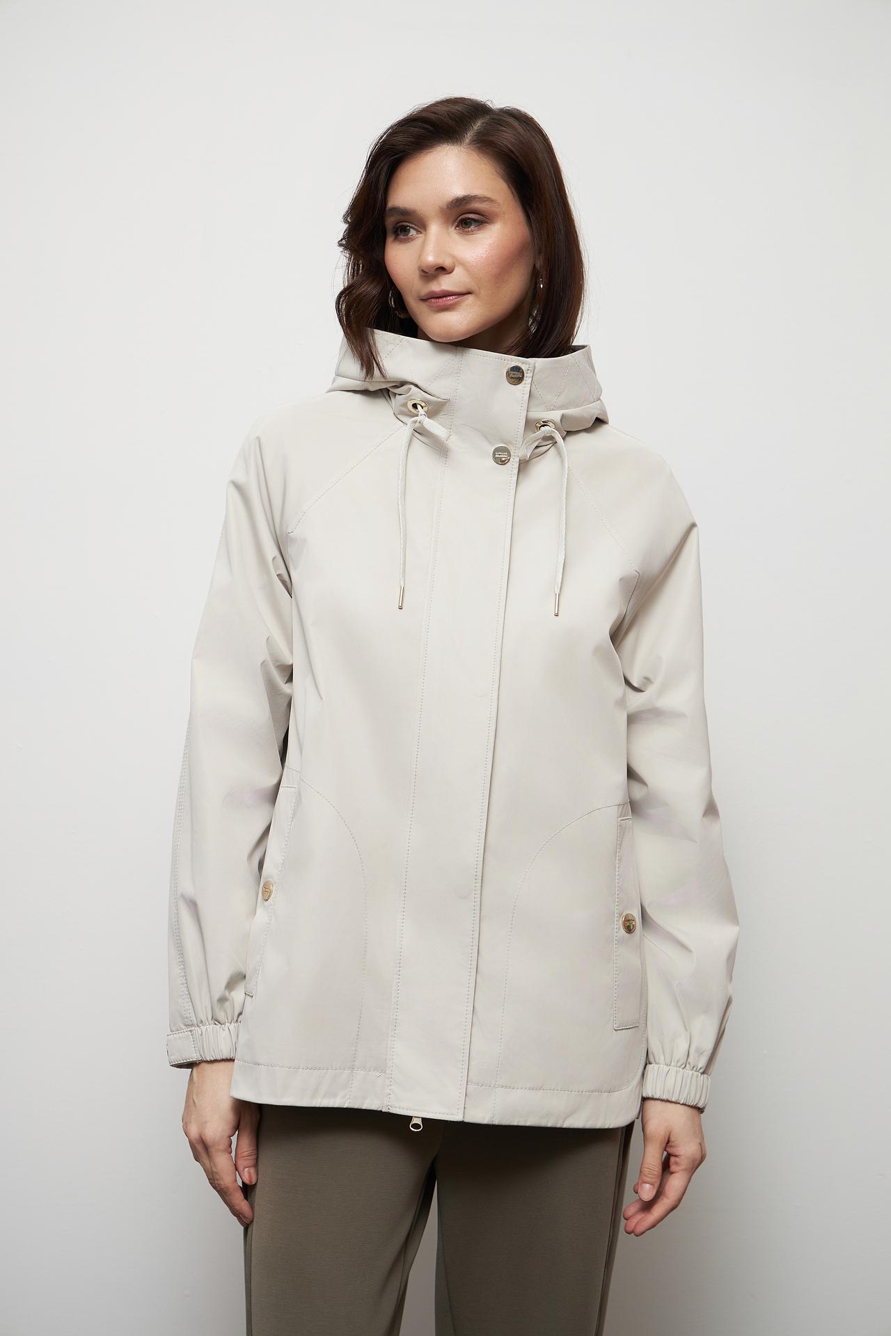 Куртка Betty Barclay бежевая с капюшоном и золотистой фурнитурой