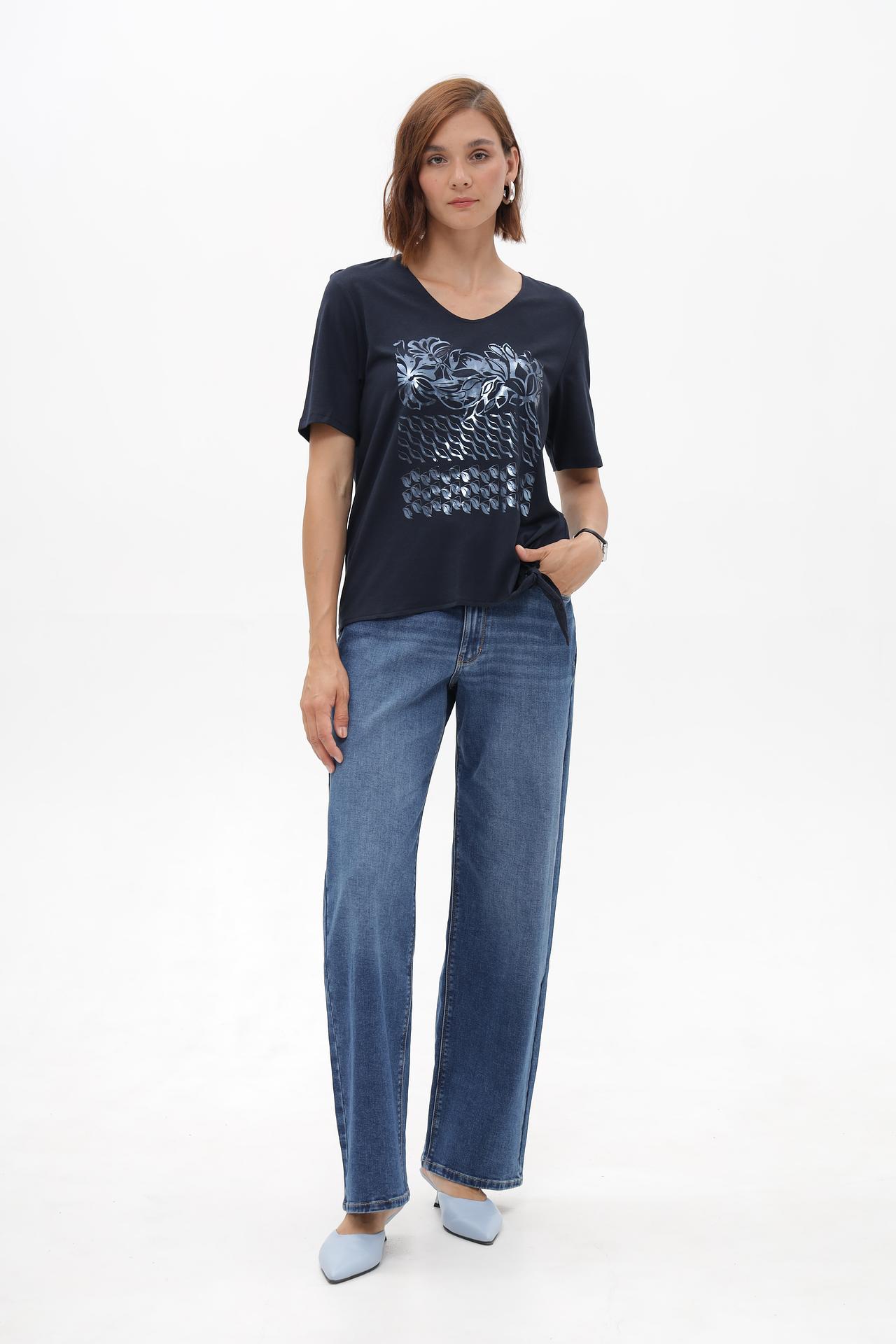 Эта футболка идеально подходит для создания как повседневных, так и более нарядных образов. Прекрасно сочетается с джинсами, юбками и брюками. Добавьте стильную футболку Betty Barclay в свою коллекцию и наслаждайтесь комфортом и безупречным видом каждый день!