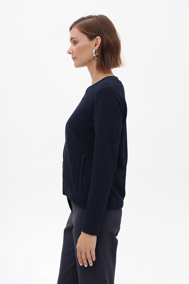 Этот жакет идеально подойдет для создания как повседневных, так и более элегантных образов. Его можно сочетать с брюками, юбками или джинсами. Универсальный темно-синий цвет легко комбинируется с другими элементами одежды.