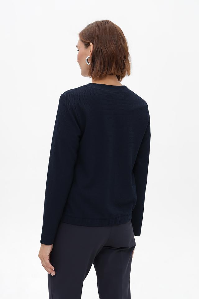 Женский жакет Betty Barclay темно-синего цвета станет стильным дополнением к вашему гардеробу. Модель выполнена из мягкого трикотажного полотна с фактурной поверхностью, что придает ей особый шарм.