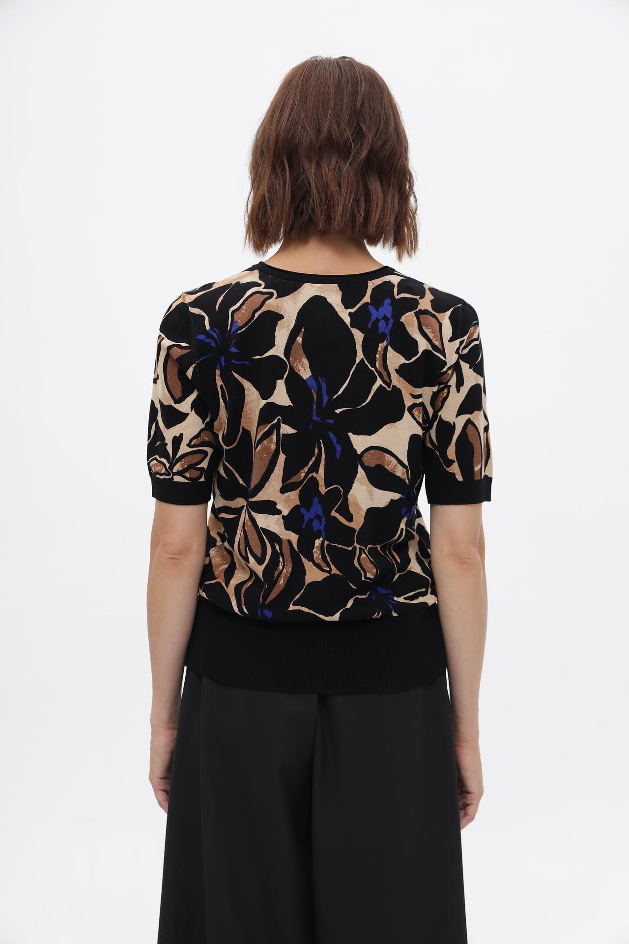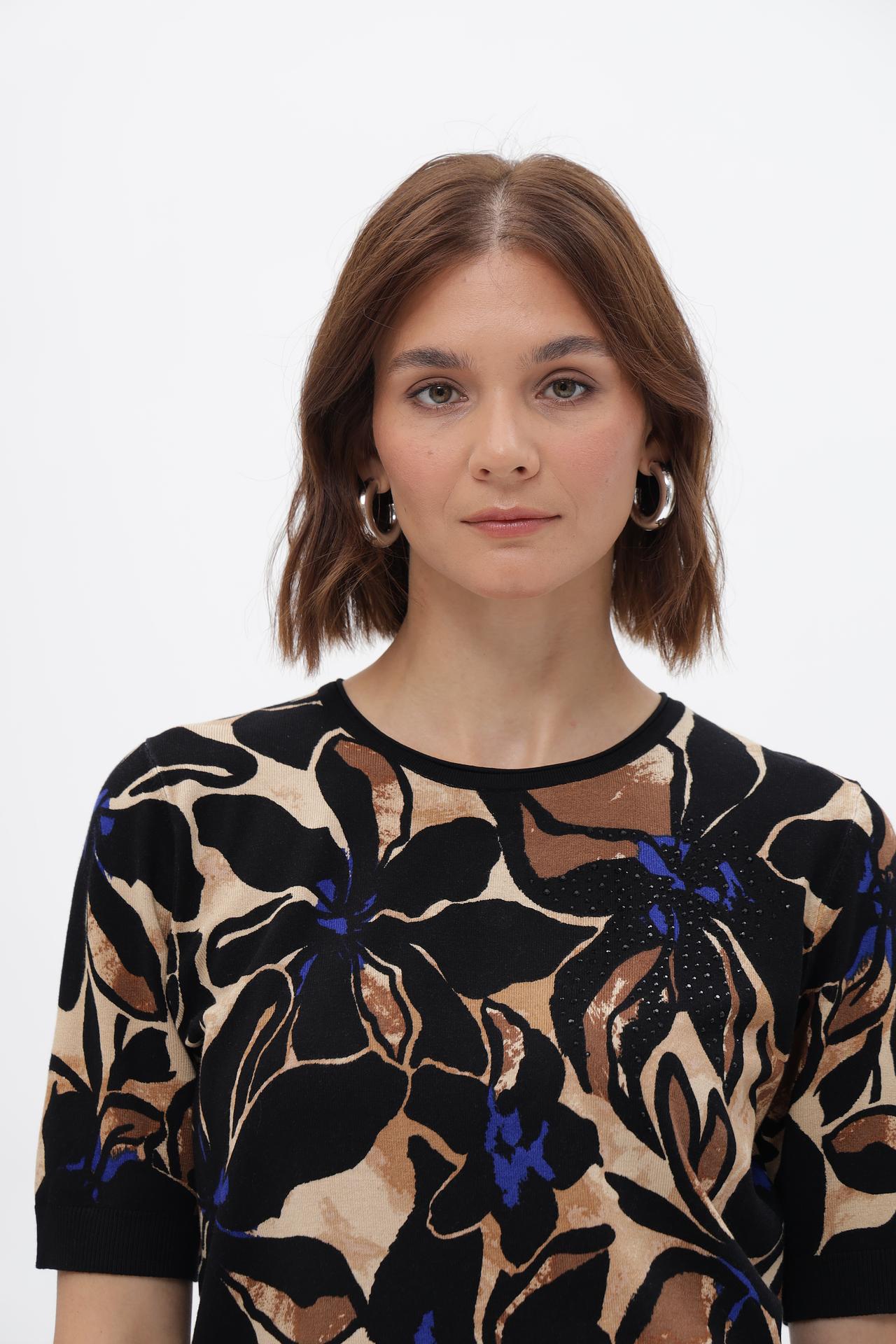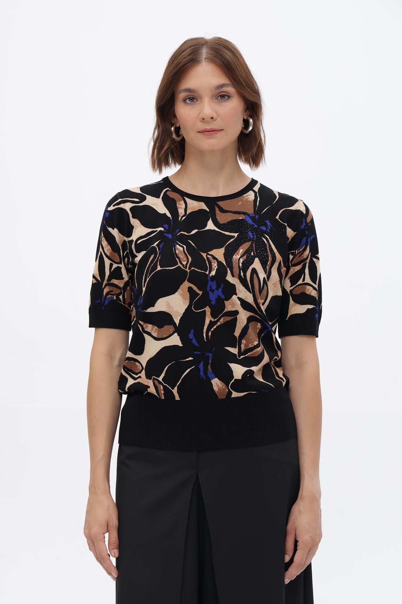 Элегантный пуловер Betty Barclay с коротким рукавом станет стильным дополнением вашего гардероба. Оригинальный цветочный принт в сочетании с изящным декором в виде страз добавляет изделию утонченности и привлекательности.