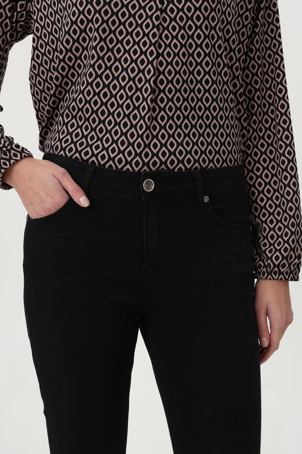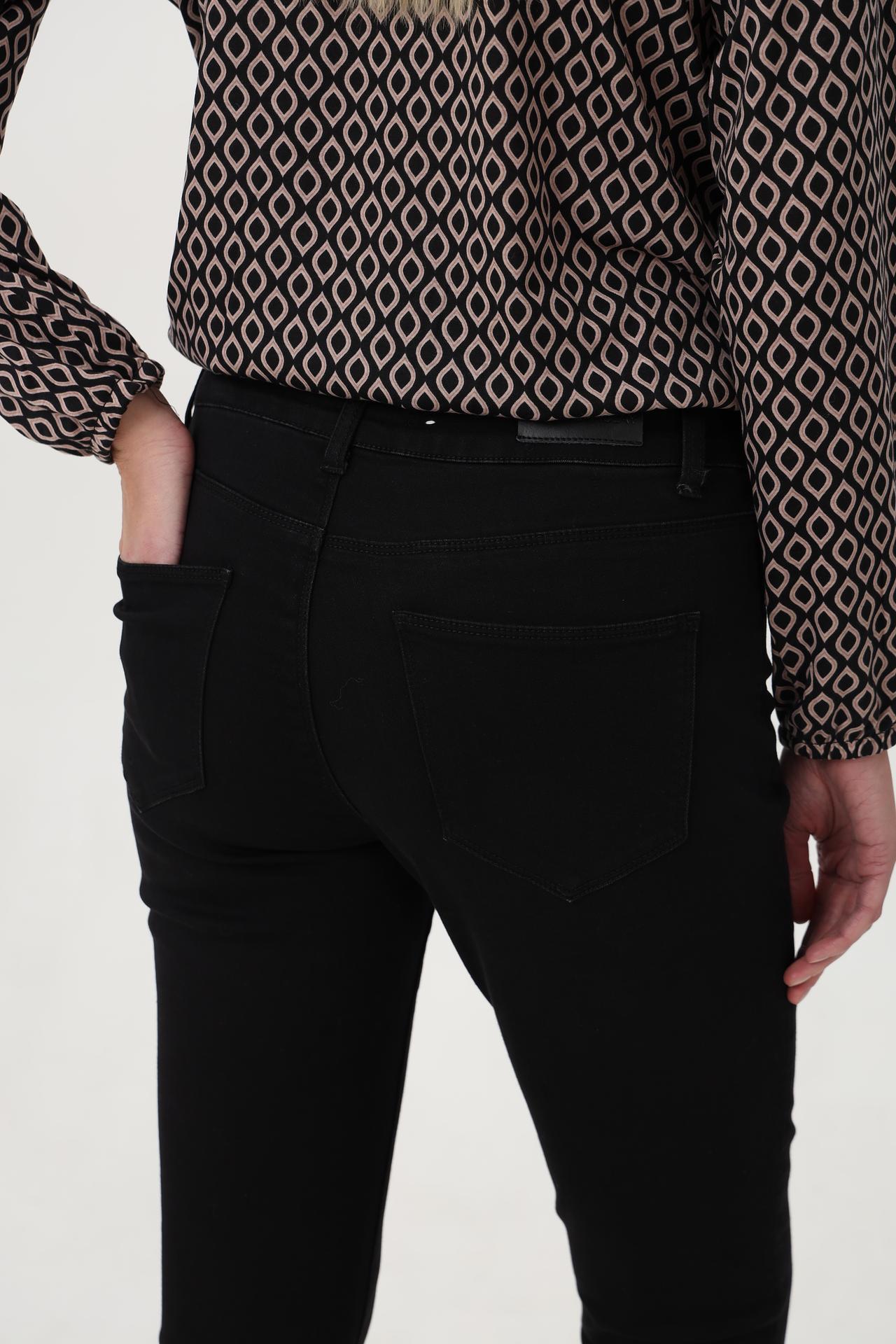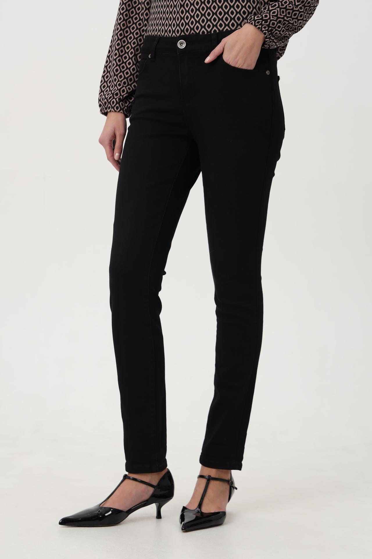 Благодаря продуманному составу, включающему хлопок, вискозу, полиэстер и эластан, джинсы обладают отличной износостойкостью, приятны на ощупь и прекрасно держат форму. Они обеспечивают комфорт в течение всего дня, позволяя вам чувствовать себя уверенно в любой ситуации. Универсальный чёрный цвет легко сочетается с любыми оттенками и стилями одежды.