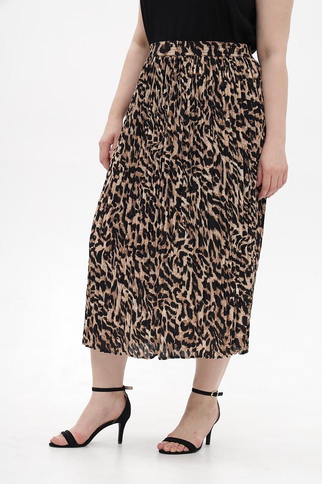 Юбка имеет плиссированную фактуру и длину миди, обеспечивая свободу движений и комфорт в носке. Эластичный пояс гарантирует идеальную посадку по фигуре.