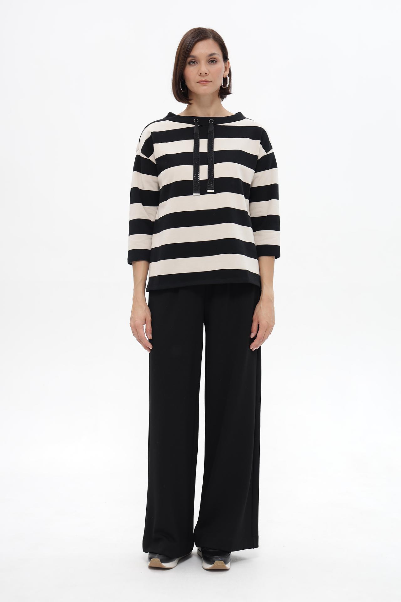 - Дизайн: Классическая горизонтальная полоска в черно-белой гамме. Актуальный принт, который никогда не выходит из моды и легко сочетается с другими элементами гардероба.