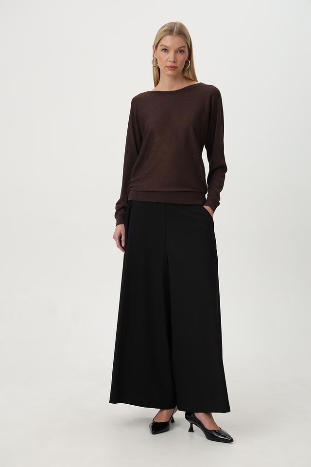 Этот пуловер идеально сочетается с брюками, юбками и джинсами, позволяя создавать разнообразные стильные комплекты.